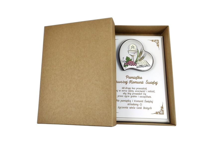 Prezentowana pamiątka to doskonały prezent na pamiątkę przyjęcia I Komunii Świętej.