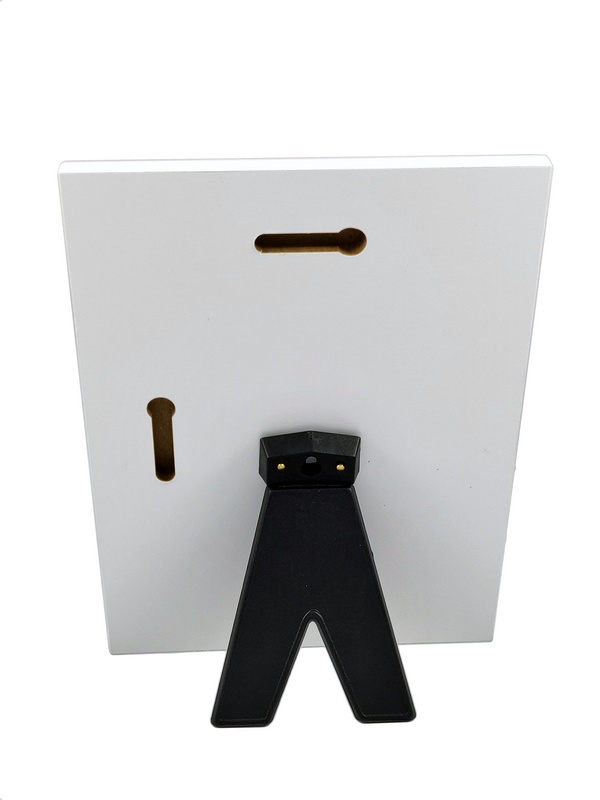 Podkład drewniany ma wielkość 15 x 20 cm. Na odwrocie ma wyfrezowany otwór do zawieszenia.