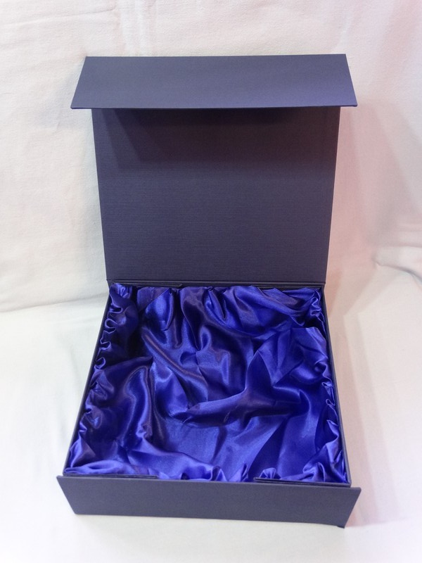 Do statuetki można dodatkowo zamówić składane etui kartonowe, wyściełane materiałem, w kolorze niebieskim.