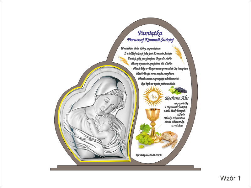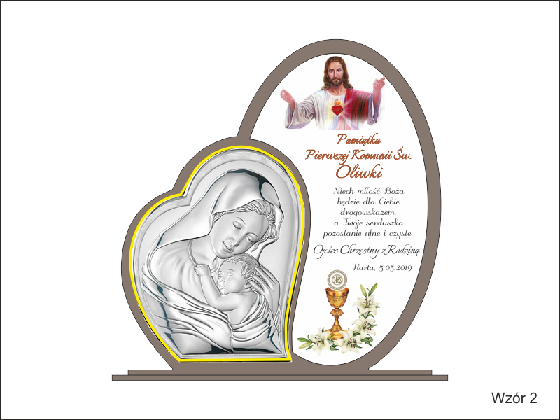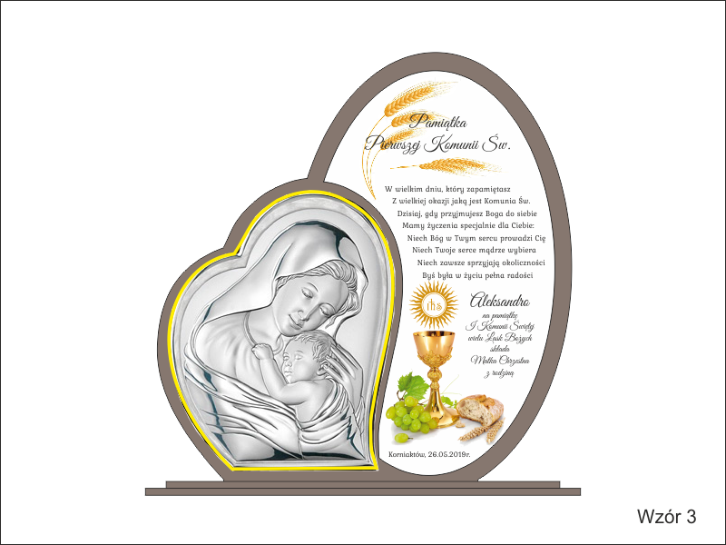 Prezentowana pamiątka dedykowana jest na pamiątkę Komunii Św. ale można także wykonać ją z okazji innych uroczystości.