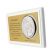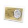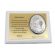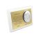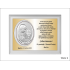 Upominek ma formę srebrnego obrazka oraz złotego grawerowanego laminatu umieszczonych na białym podkładzie drewnianym.