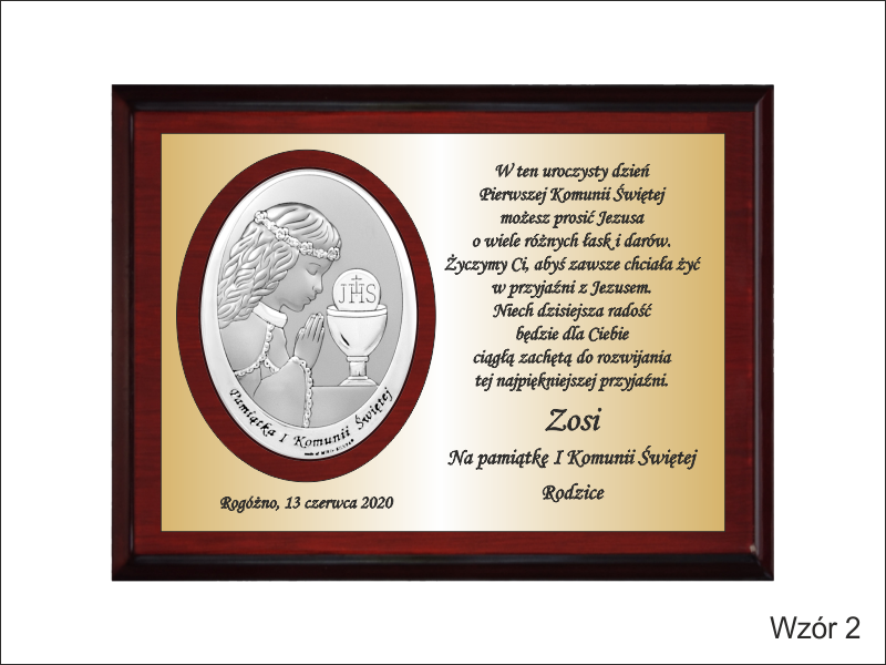 Istnieje możliwość wykonania pamiątki wg jednego z przedstawionych wzorów lub wg indywidualnych ustaleń i projektu.