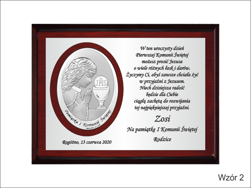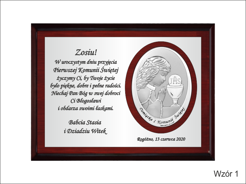 Istnieje możliwość wykonania pamiątki wg jednego z przedstawionych wzorów lub wg indywidualnych ustaleń i projektu.