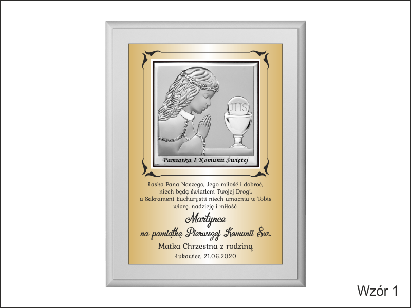 Istnieje możliwość wykonania pamiątki wg jednego z przedstawionych wzorów lub wg indywidualnych ustaleń i projektu.