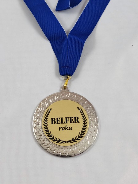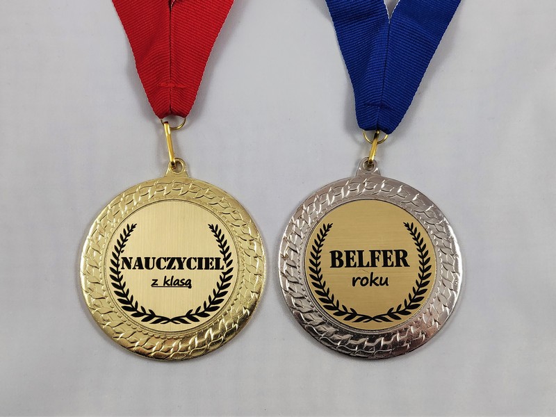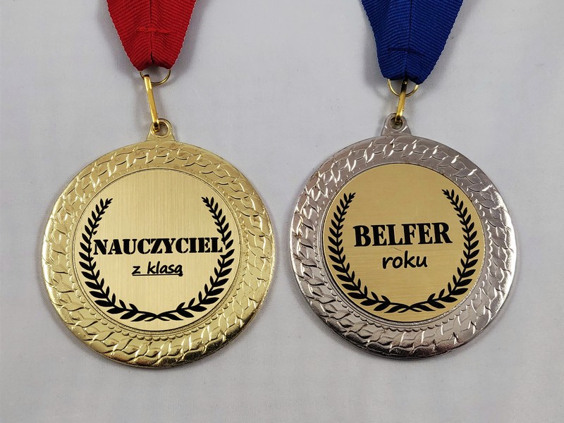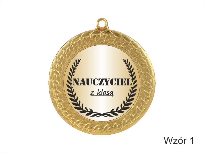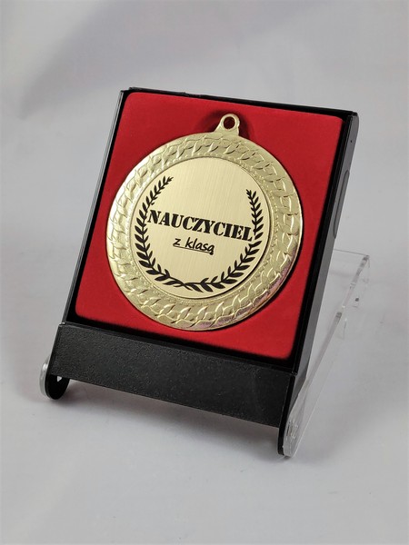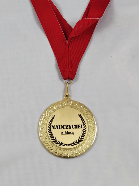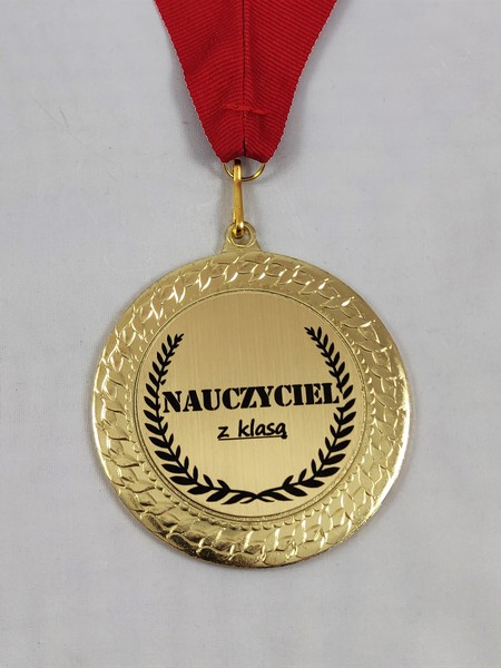 Upominek dla Nauczyciela w postaci metalowego dużego medalu z dedykacją.