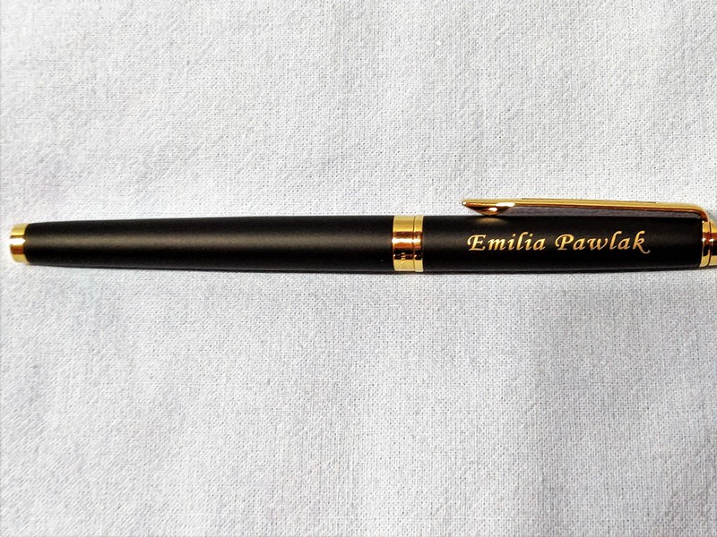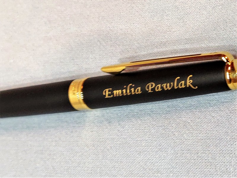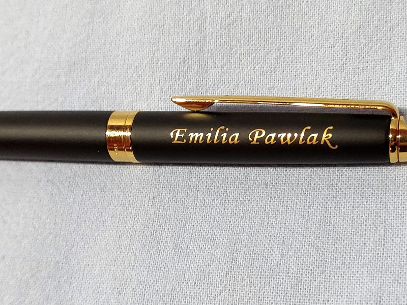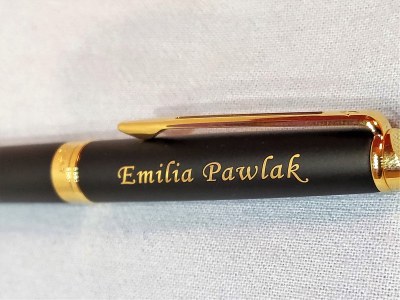 Na powierzchni pióra wykonujemy grawerowanie dedykacji, grafiki lub loga.