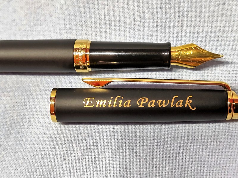 Upominek dla Nauczyciela w postaci pióra wiecznego Parker IM Black GT z grawerem dedykacji.