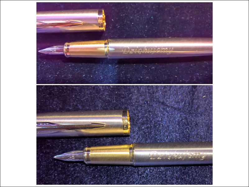 Na powierzchni pióra wykonujemy grawerowanie dedykacji, imienia i nazwiska, inicjałów, grafiki lub loga.