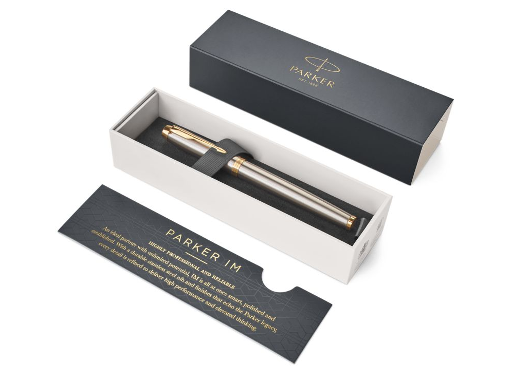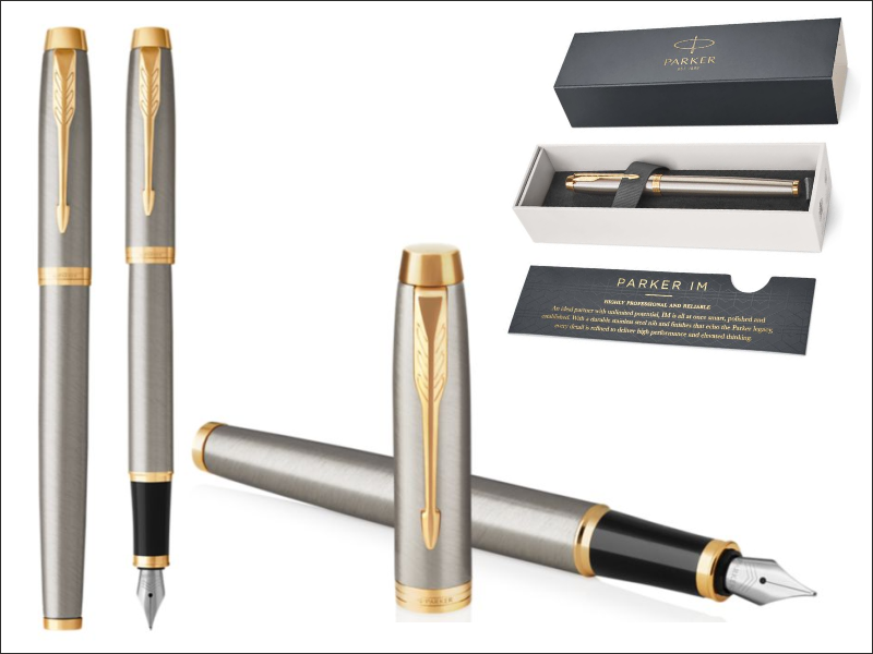 Doskonałe połączenie formy i funkcjonalności. Korpus oraz skuwkę pióra Parker IM Brushed Metal GT wykonano z mosiądzu pokrytego lakierem o kolorze szczotkowanej stali. Uchwyt wykonany jest z połyskującego, czarnego materiału polimerowego. Całość wieńczą wykończenia platerowane złotem. Stalówka wykonana z wysokiej jakości stali szlachetnej.