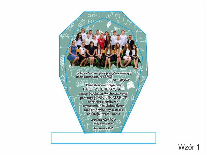Prezentowana pamiątkowa statuetka dedykowana jest dla Nauczyciela ale można wykonać ją także na inne okazje.