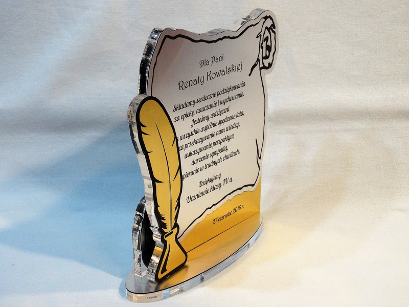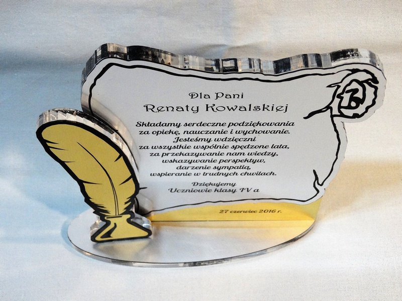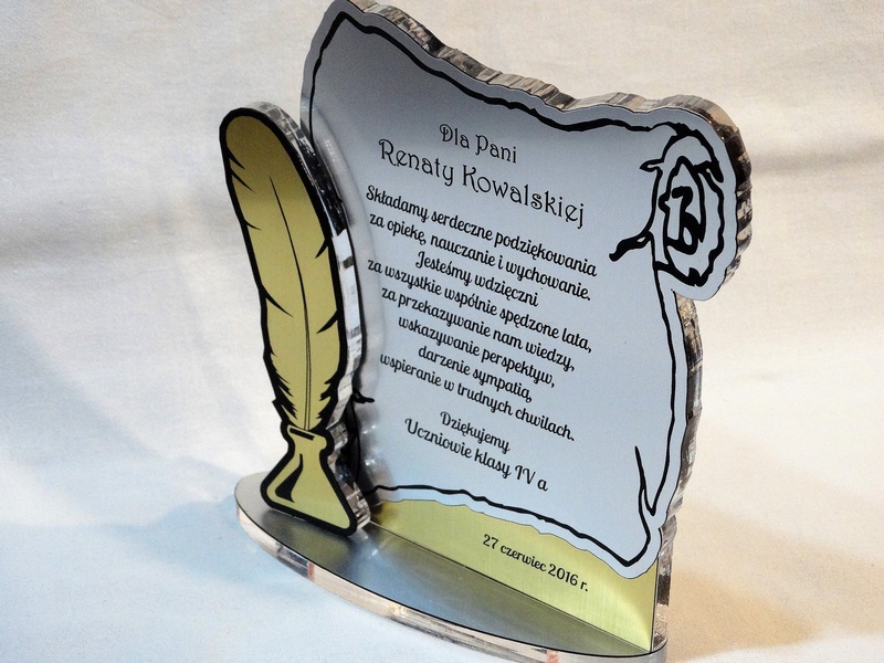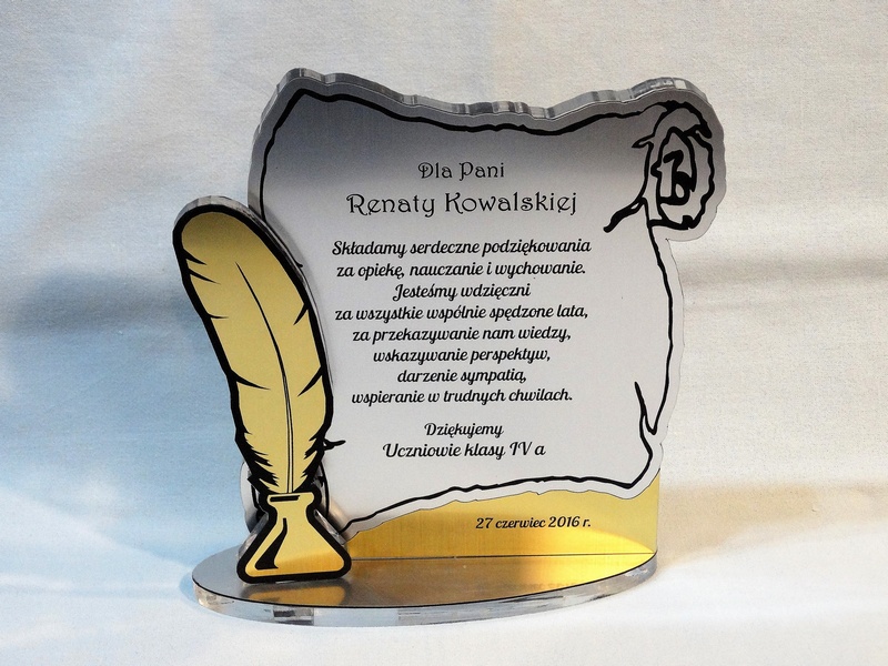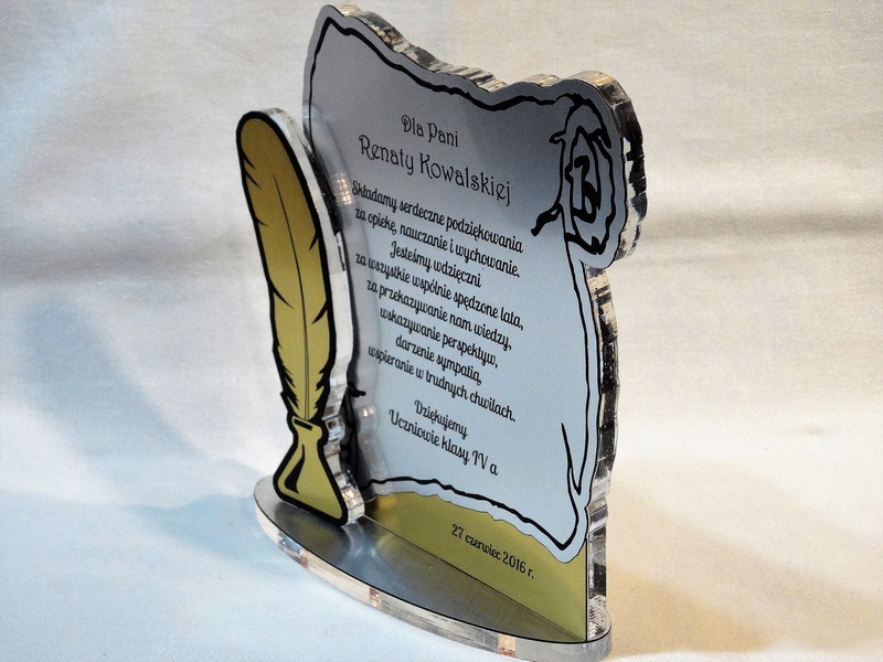 Pamiątkowa statuetka z podziękowaniem dla Nauczyciela.
