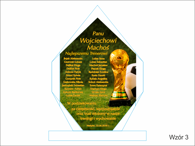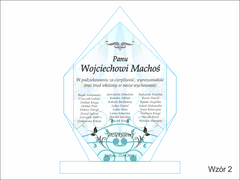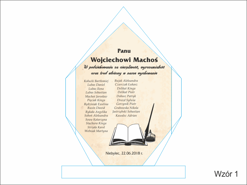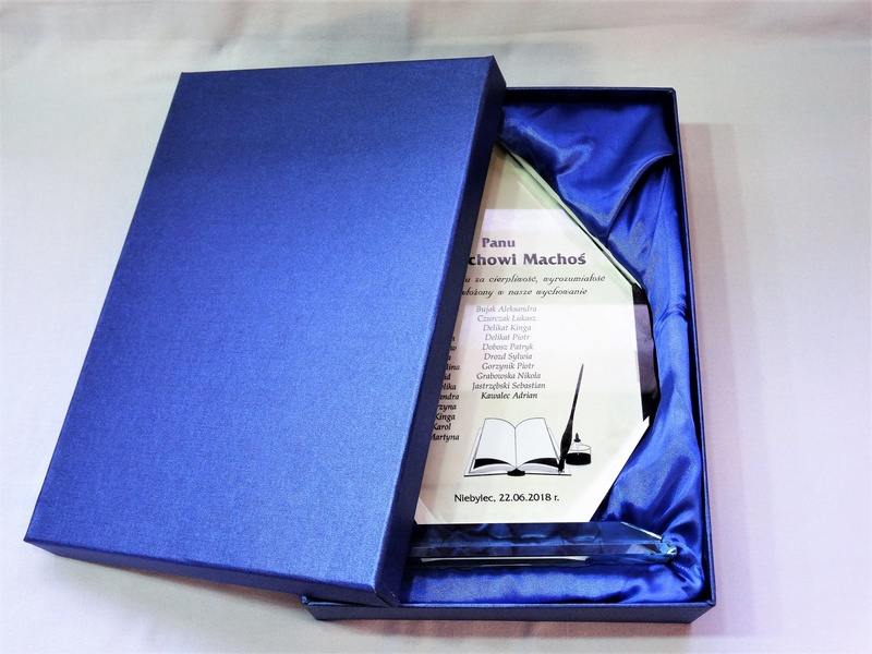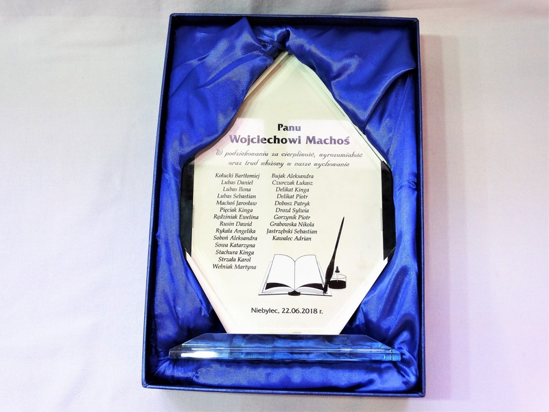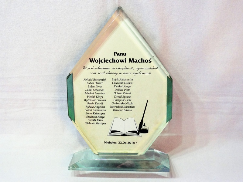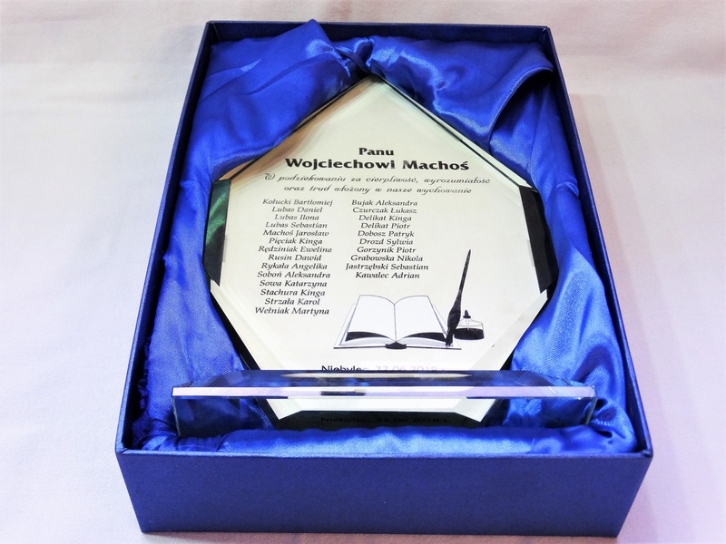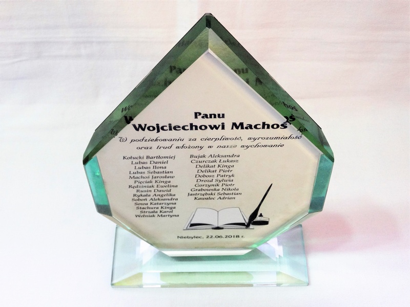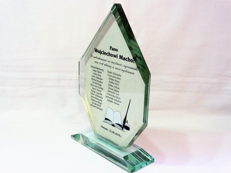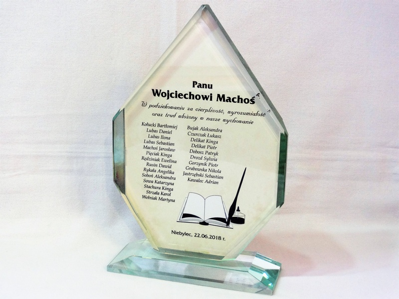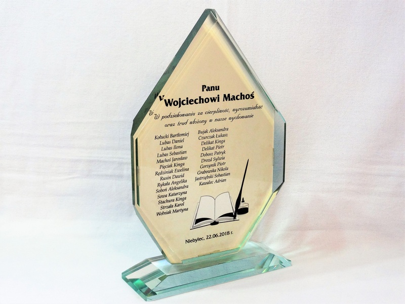 Pamiątkowy nadruk dla Nauczyciela można także wykonać na innych modelach szklanych statuetek.