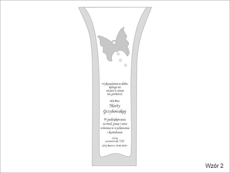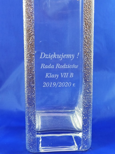 Od frontu można wykonać grawer krótkiej dedykacji lub na odwrocie wazonu dłuższej.
