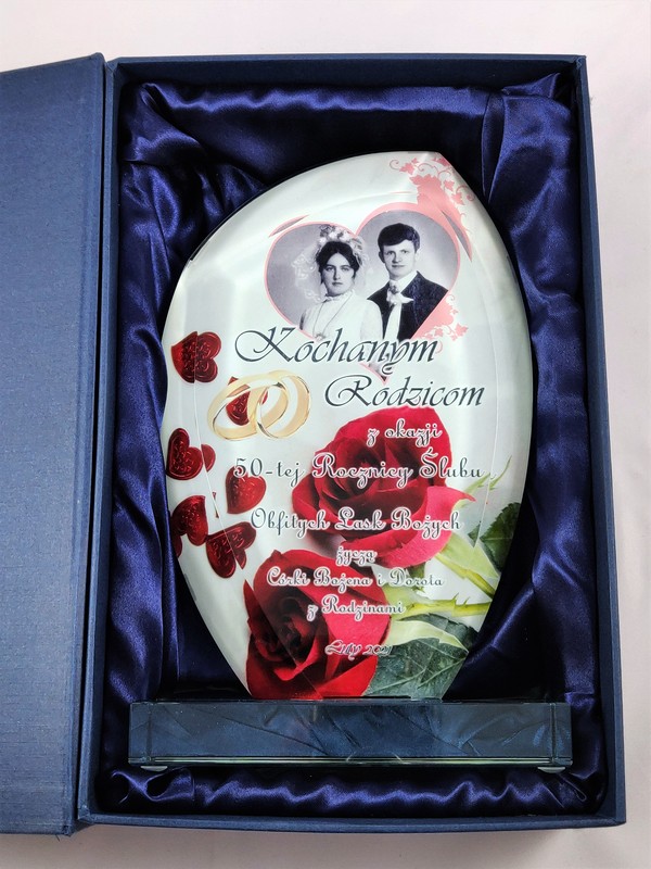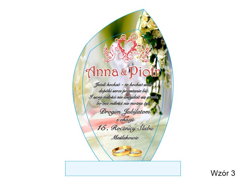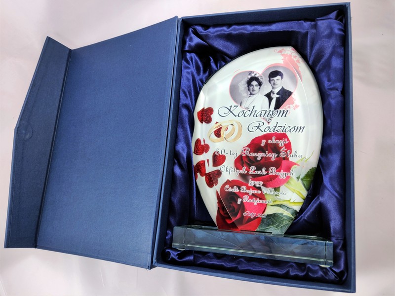 Prezentowana statuetka dedykowana jest jako pamiątka rocznicowa, ale można wykonać ją także na inną okazję.