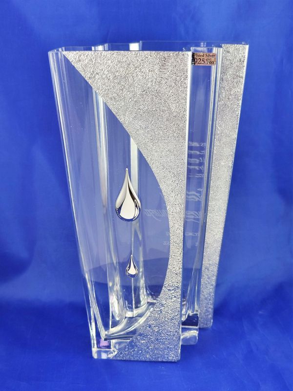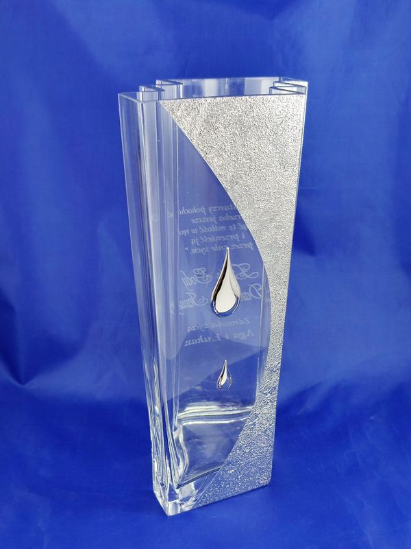 Prezent na rocznicę ślubu - szklany wazon Emanuel zdobiony srebrnymi kroplami z grawerem dedykacji.