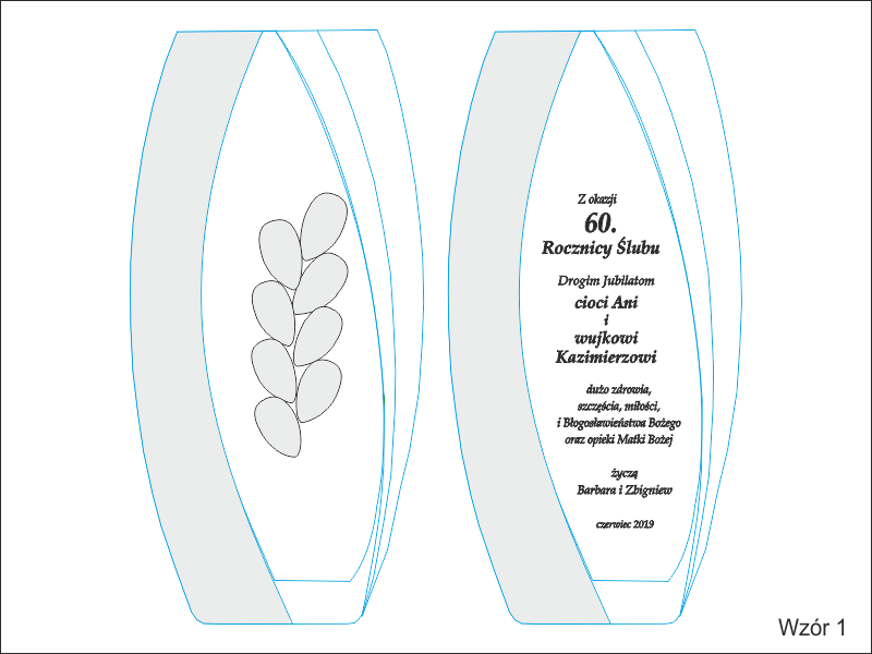 Istnieje możliwość graweru dedykacji wg indywidualnych ustaleń i projektu lub wg jednego ze wzorów.