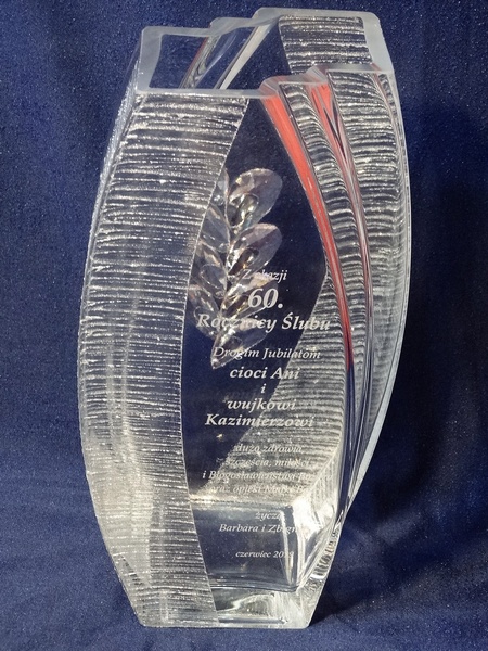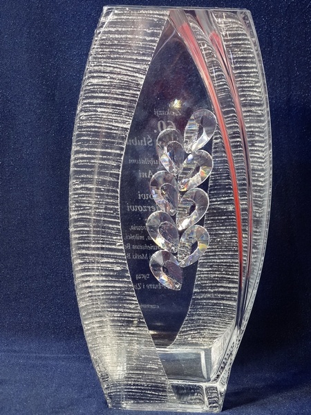 Intrygująca forma i zdobienie wazonu w połączeniu z dedykowanym pamiątkowym grawerem wzbudzi zachwyt i niepowtarzalne emocje obdarowanych.