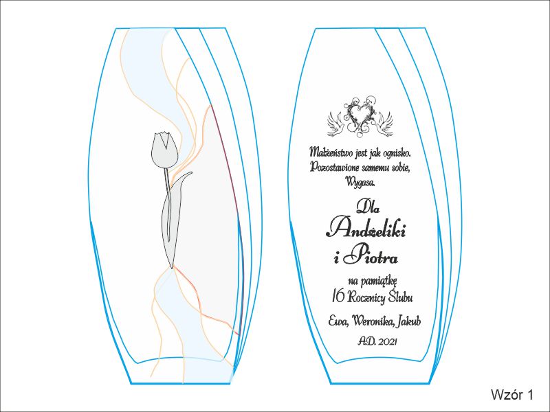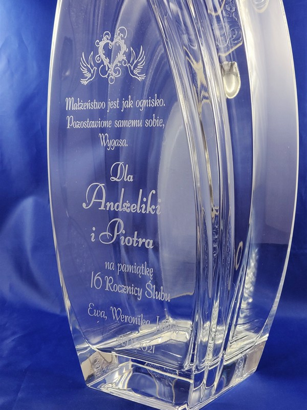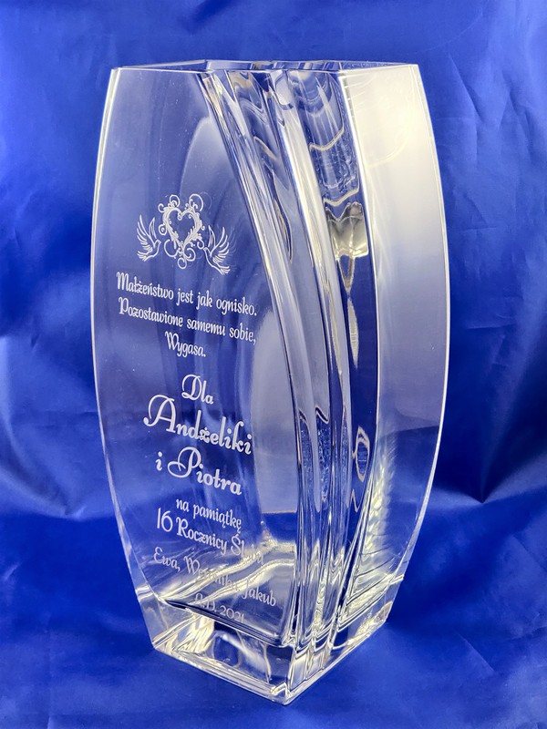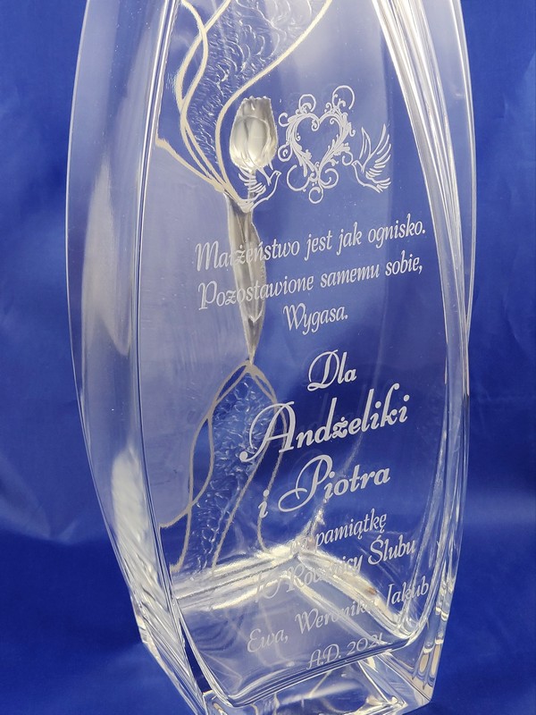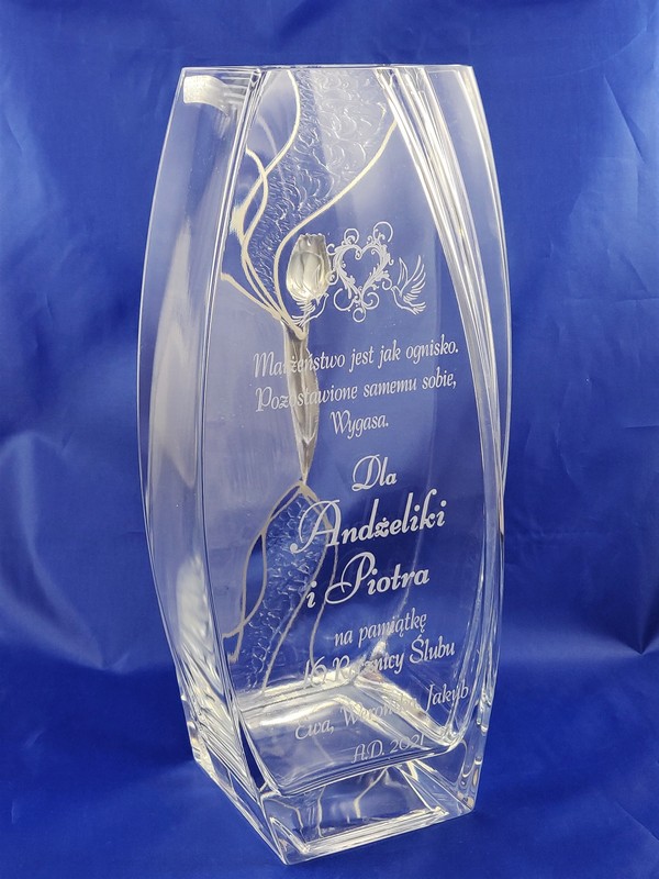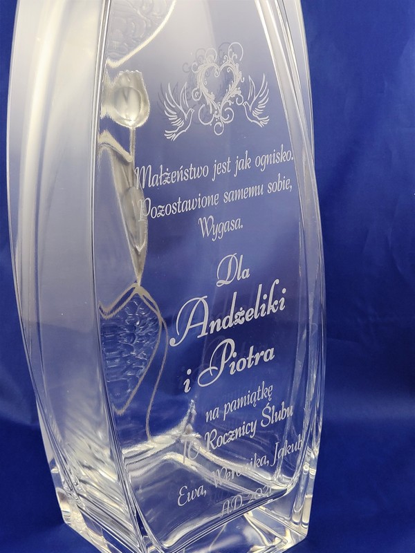 Pamiątkowy grawer na Rocznicę Ślubu można także wykonać na innych modelach wazonów.
