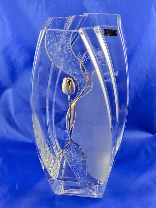 W centralnej części wazonu umieszczony jest charakterystyczny, srebrny piękny kwiat tulipana.