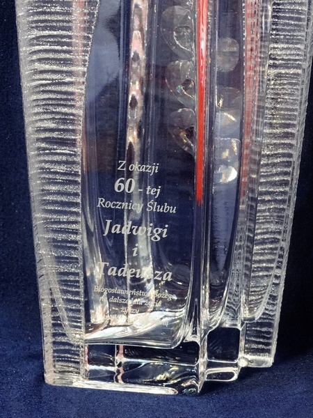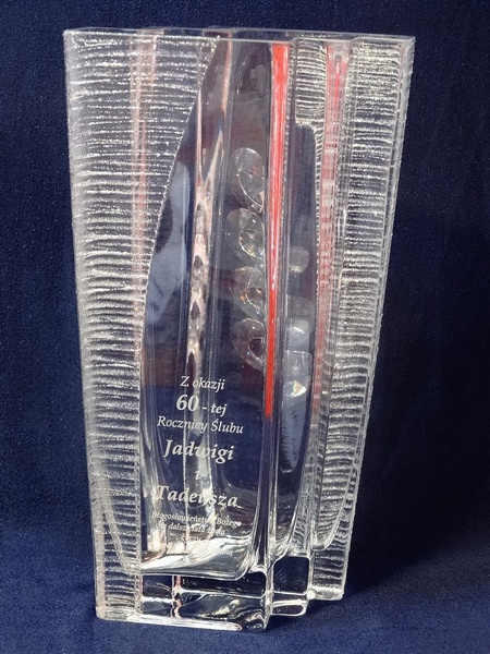 Pamiątkowy grawer na Rocznicę Ślubu można także wykonać na innych modelach wazonów.