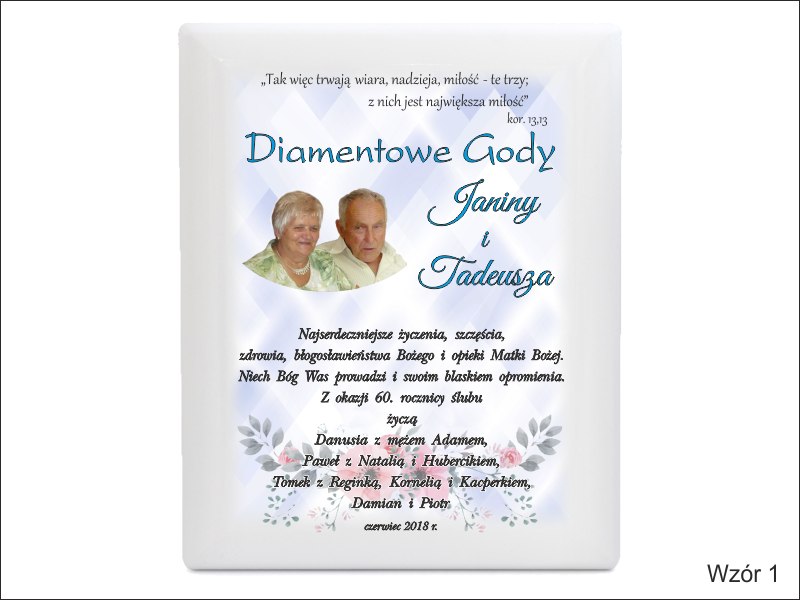 Istnieje możliwość wykonania pamiątki wg indywidualnych ustaleń i projektu lub wg jednego z wzorów.