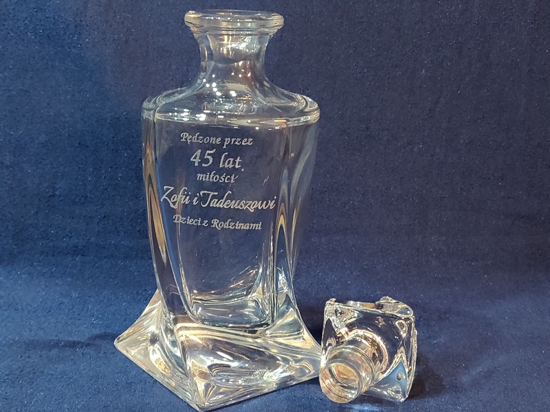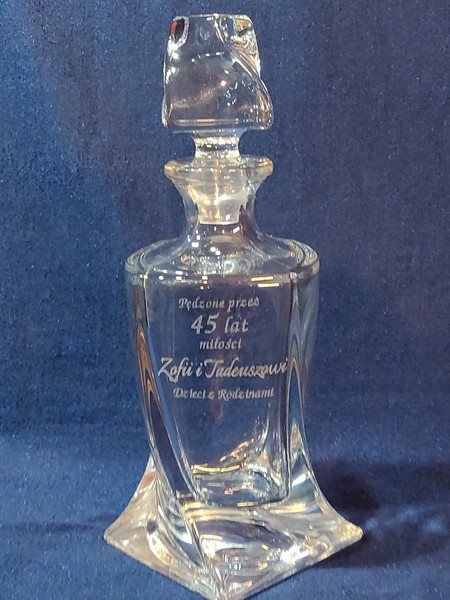 Na karafce wykonany jest grawer ozdobników i dedykacji z okazji Rocznicy Ślubu.