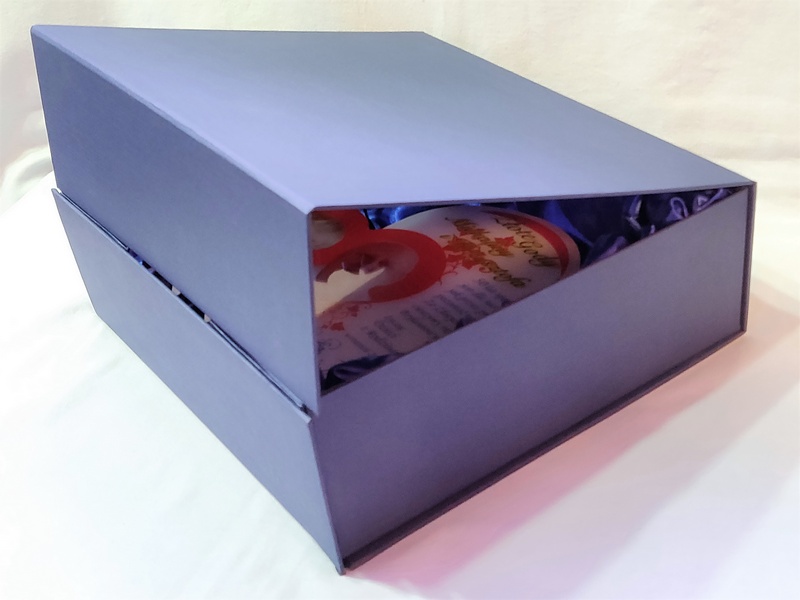 Do statuetki można dodatkowo zamówić składane etui kartonowe, wyściełane materiałem, w kolorze niebieskim.