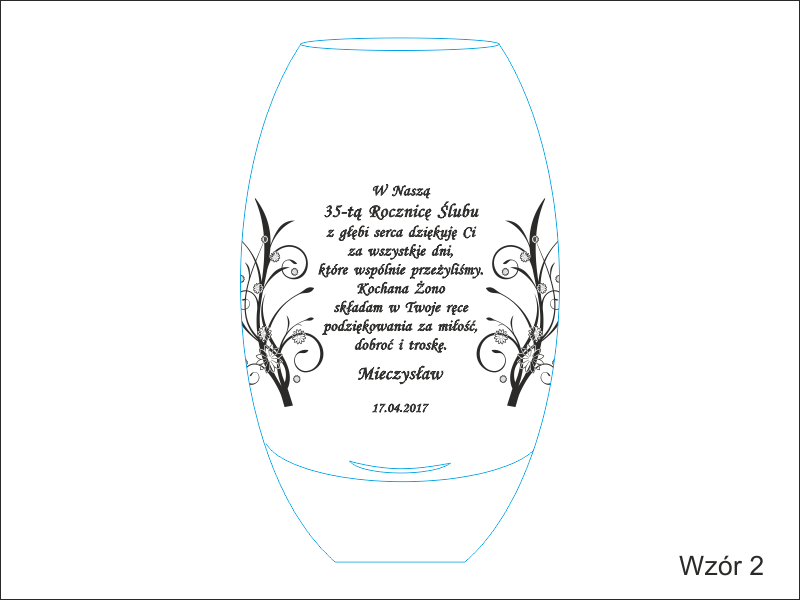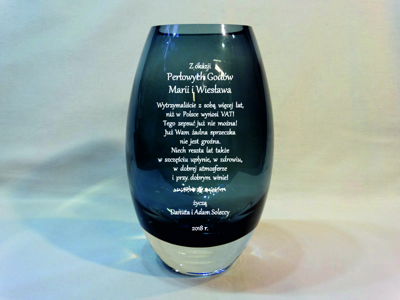 Pamiątkowy grawer na Rocznicę Ślubu można także wykonać na innych modelach wazonów.