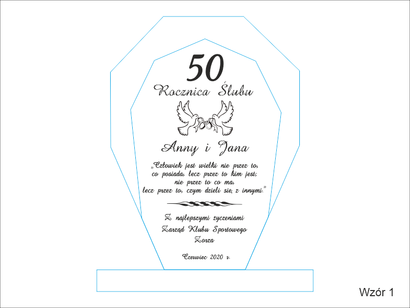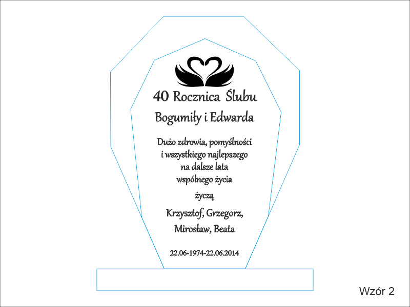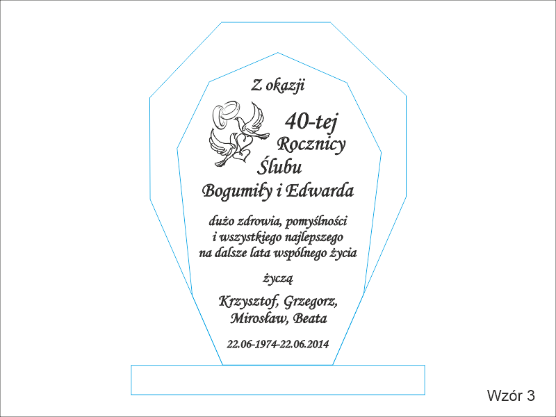 Istnieje możliwość graweru dedykacji wg indywidualnych ustaleń i uzgodnionego projektu lub wg jednego z wzorów.