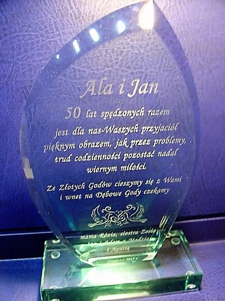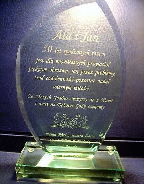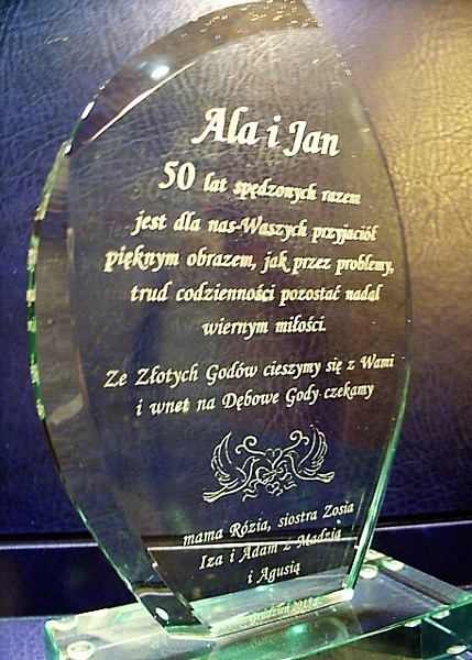 Oprócz dedykacji i ozdobnych grafik istnieje także możliwość wygrawerowania zdjęcia Jubilatów.