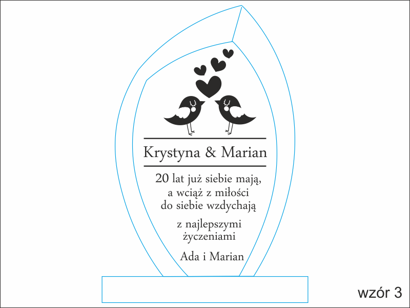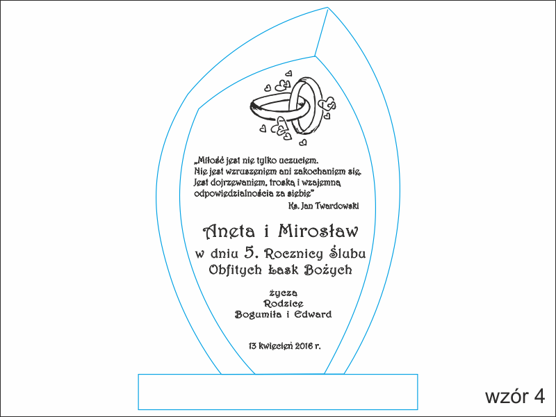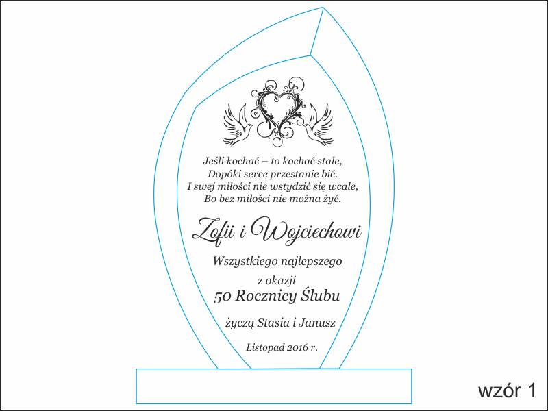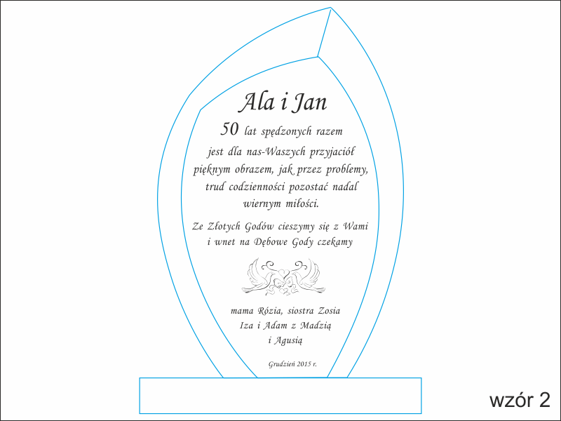Istnieje możliwość graweru dedykacji wg indywidualnych ustaleń i projektu uzgodnionego z klientem lub wg jednego z wzorów.
