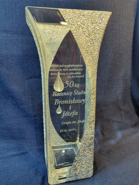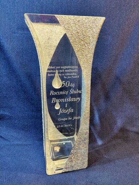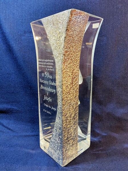 Intrygująca forma i zdobienie wazonu w połączeniu z dedykowanym pamiątkowym grawerem wzbudzi zachwyt i niepowtarzalne emocje obdarowanych.