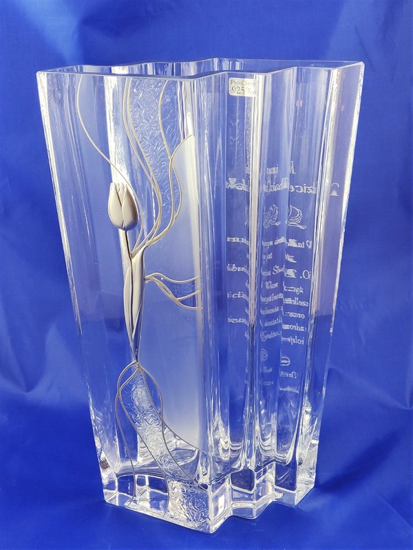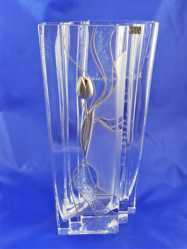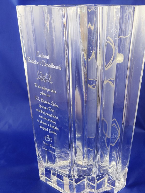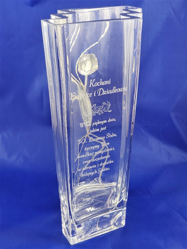 Nietuzinkowa forma i zdobienie wazonu w połączeniu z dedykowanym pamiątkowym grawerem wzbudzi zachwyt i niepowtarzalne emocje obdarowanych.