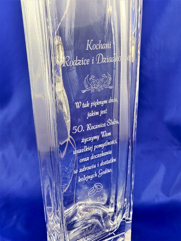 Pamiątkowy grawer na Rocznicę Ślubu można także wykonać na innych modelach wazonów.