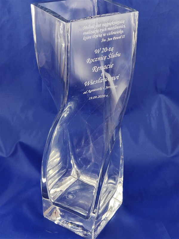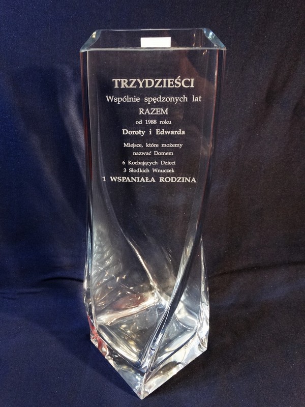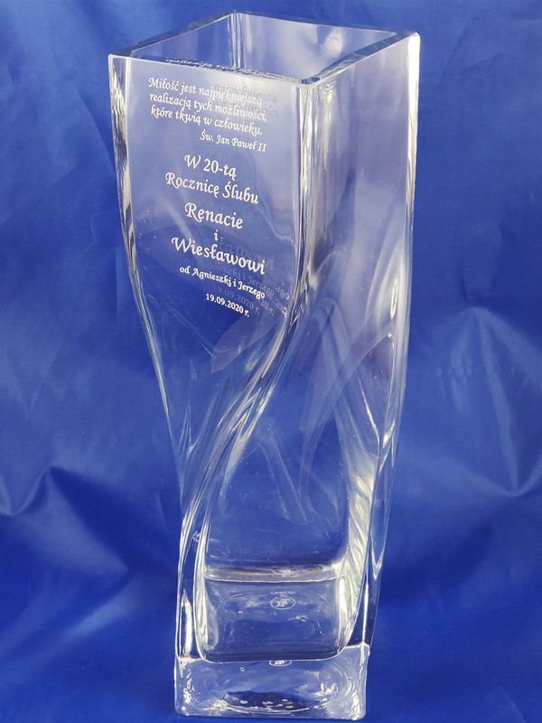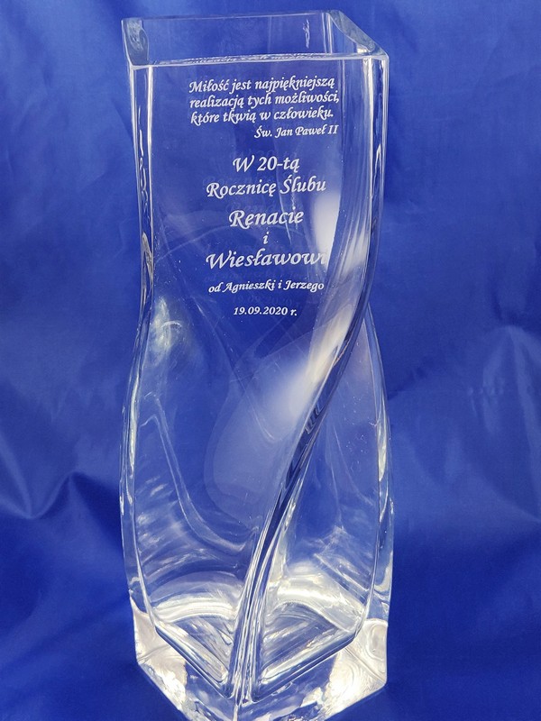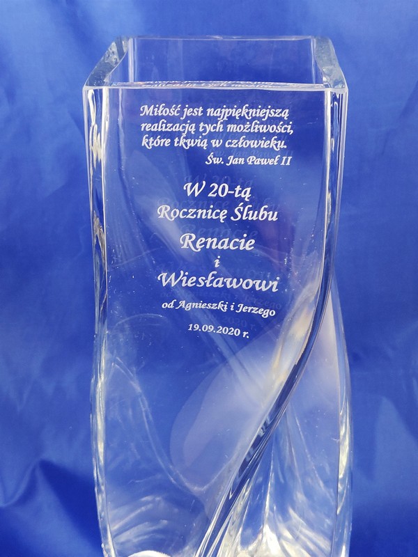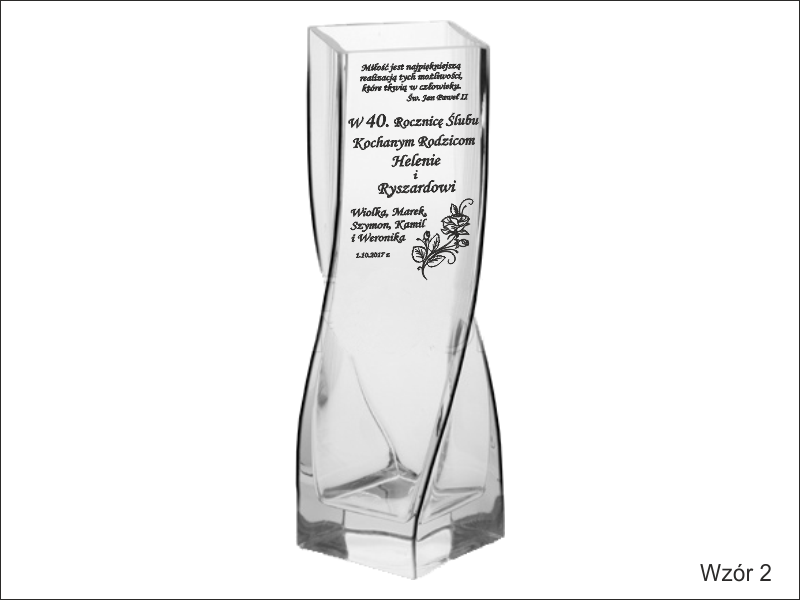 Pamiątkowy grawer na Rocznicę Ślubu można także wykonać na innych modelach wazonów.