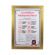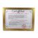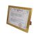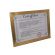 Certyfikat ma postać dyplomu umieszczonego w drewnianej złotej ramie za szkłem.