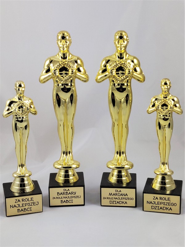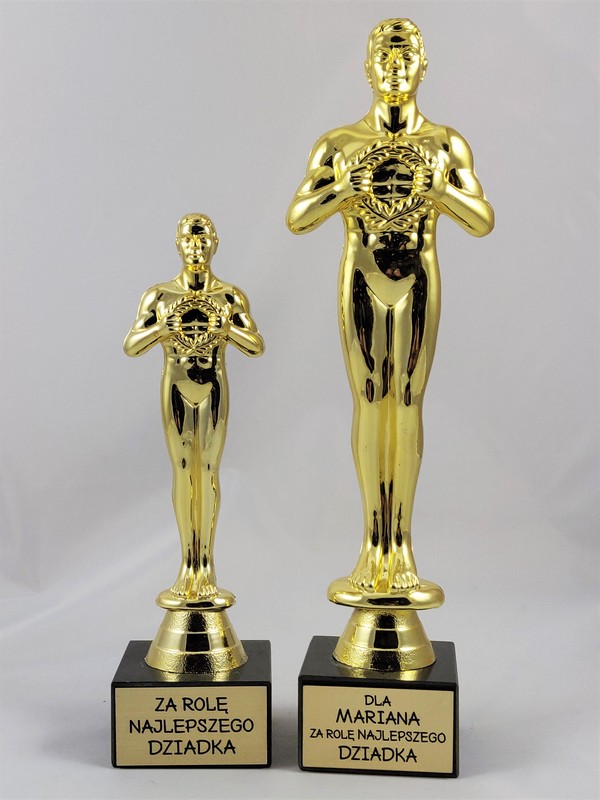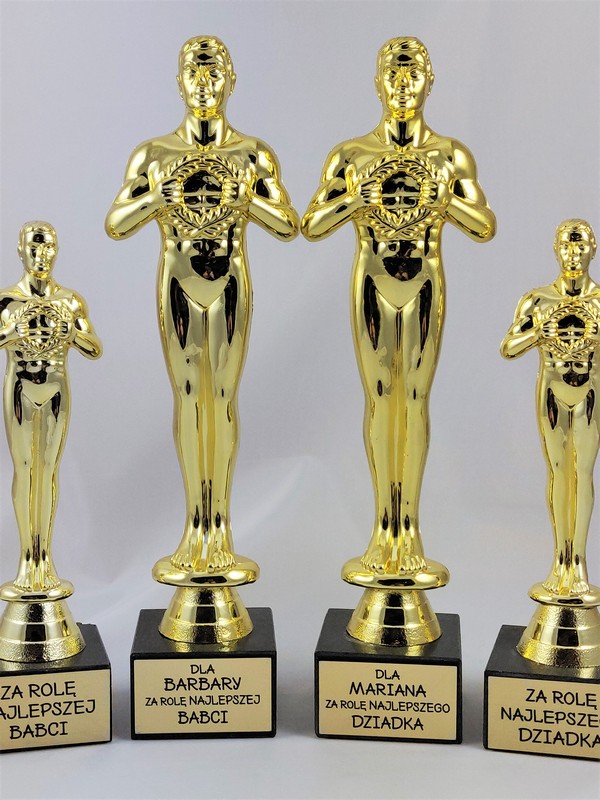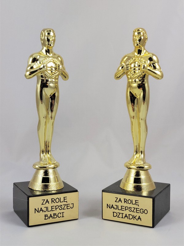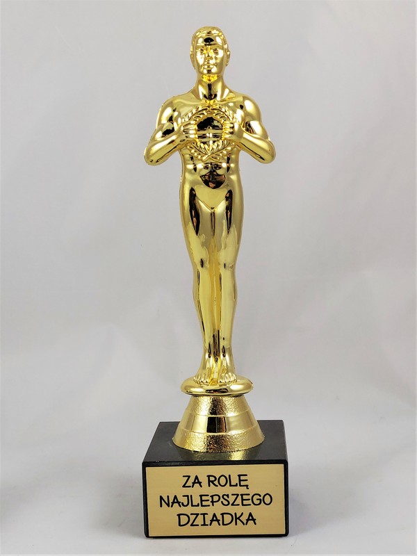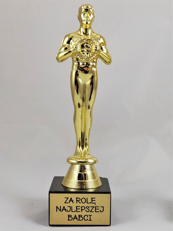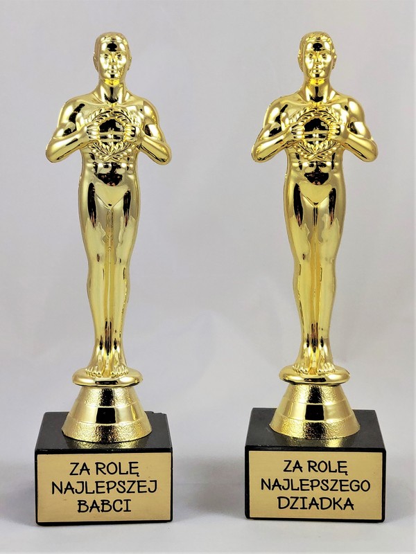 Upominek dla Babci lub Dziadka w postaci statuetki oskara z grawerem dedykacji.
