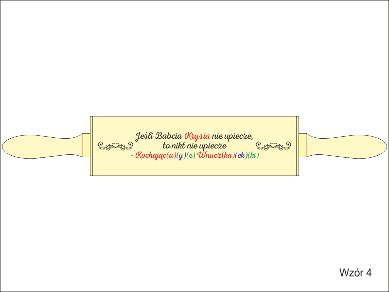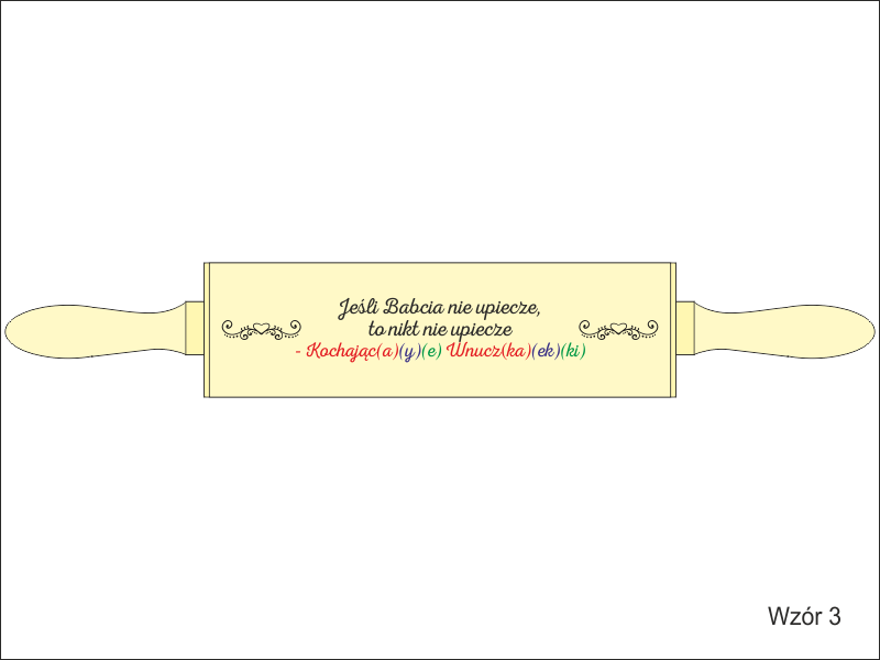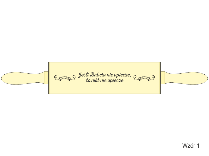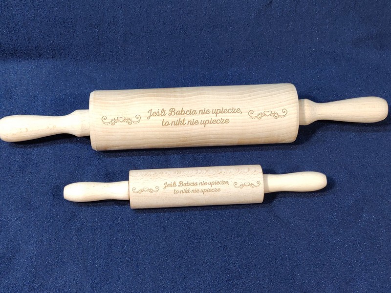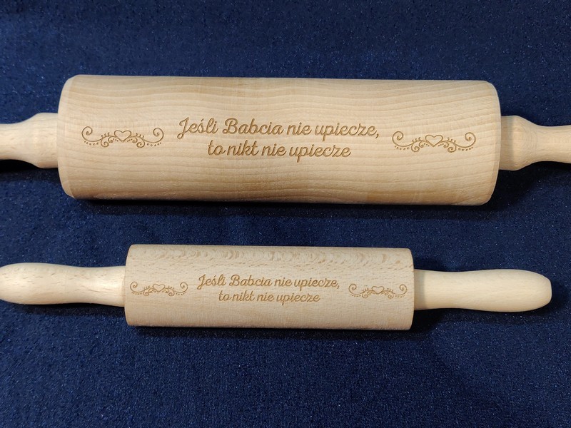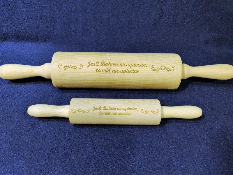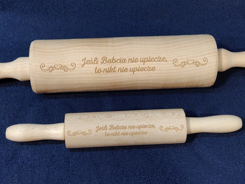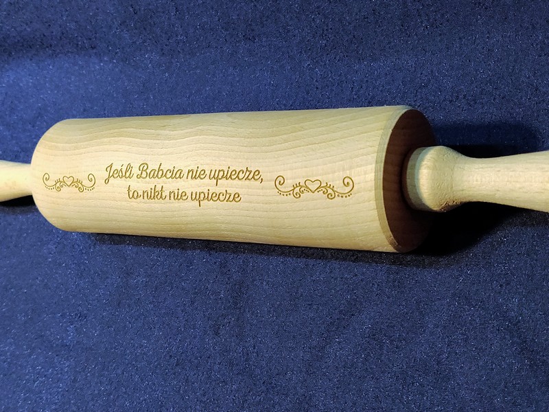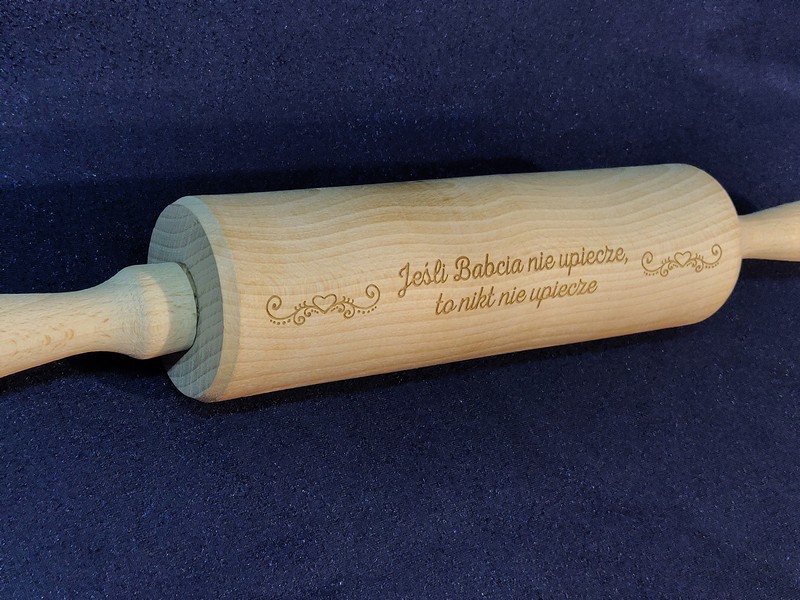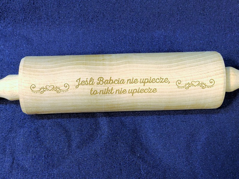Na wałku wykonany jest grawer dedykacji "Jeśli Babcia nie upiecze, to nikt nie upiecze".