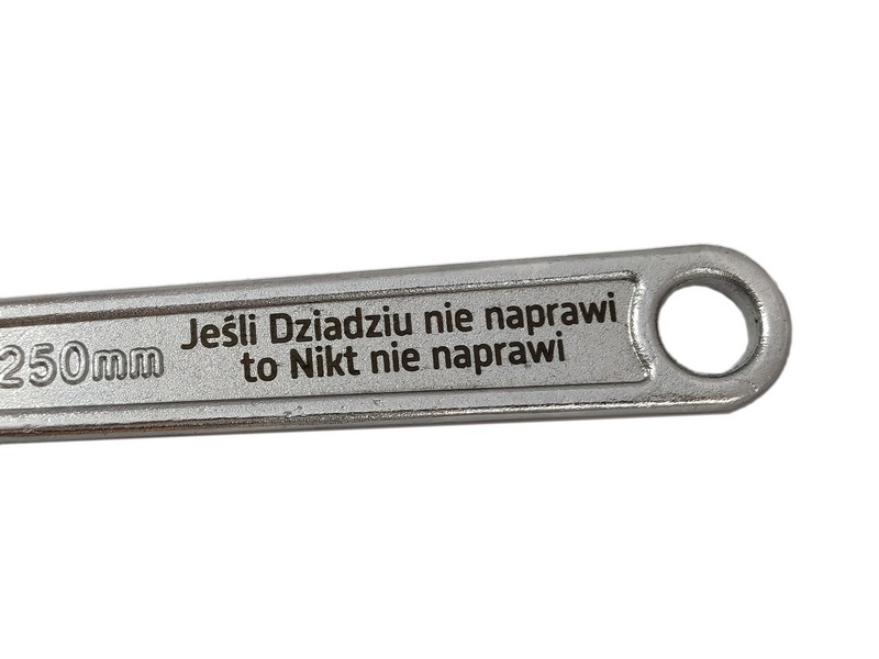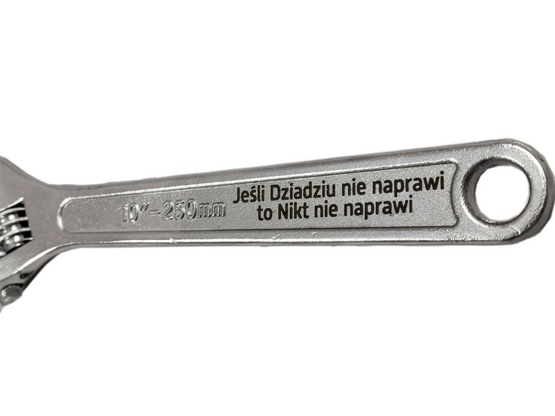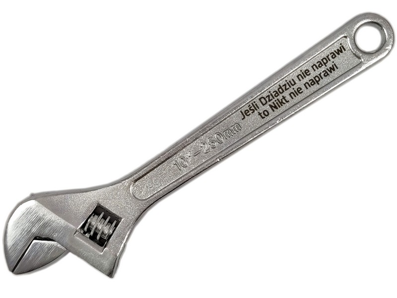 Praktyczny upominek dla Dziadka w postaci klucza nastawnego z grawerem dedykacji.