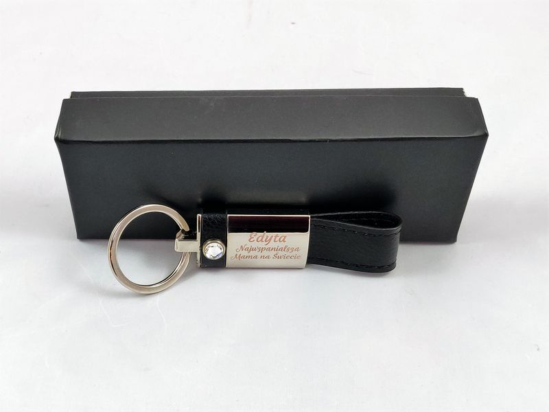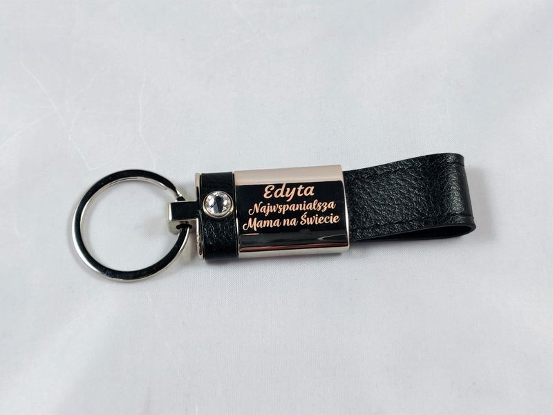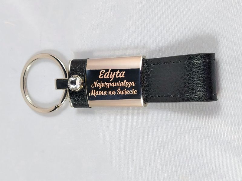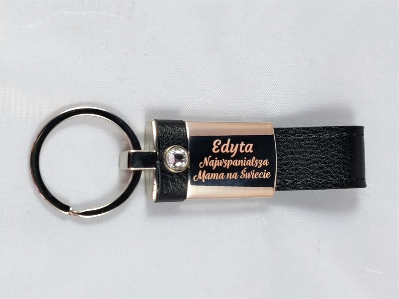 Upominek dla Mamy w postaci eleganckiego breloka z kryształkiem Swarovskiego z grawerem dedykacji.