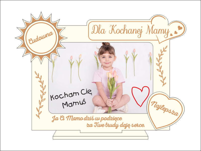 Prezentowana ramka jest szczególnie polecana jako upominek z okazji Dnia Matki lub na urodziny mamy.