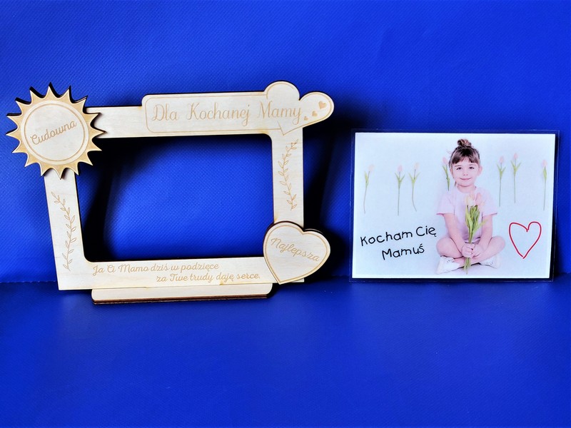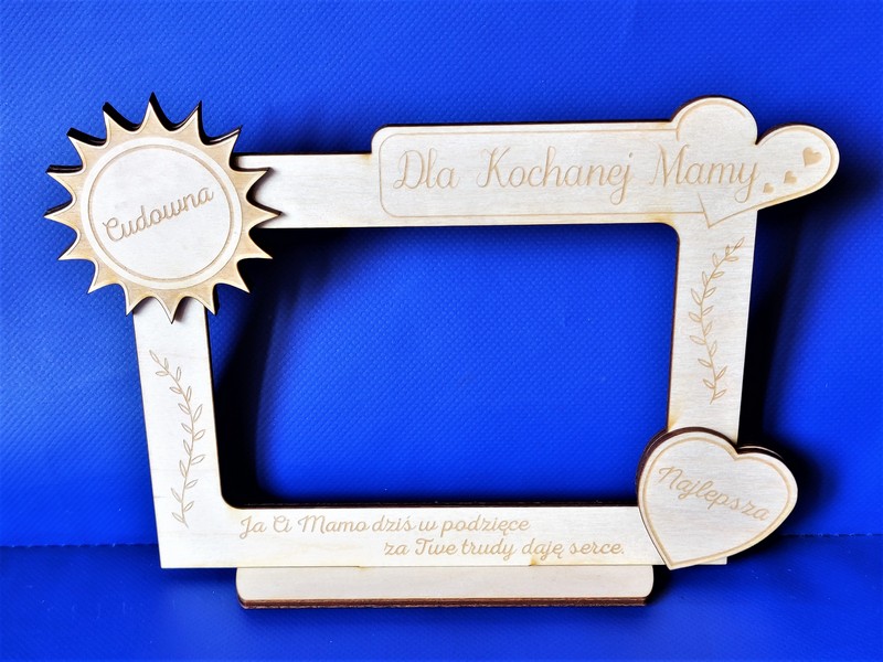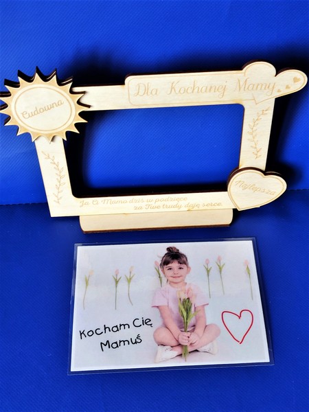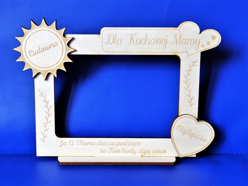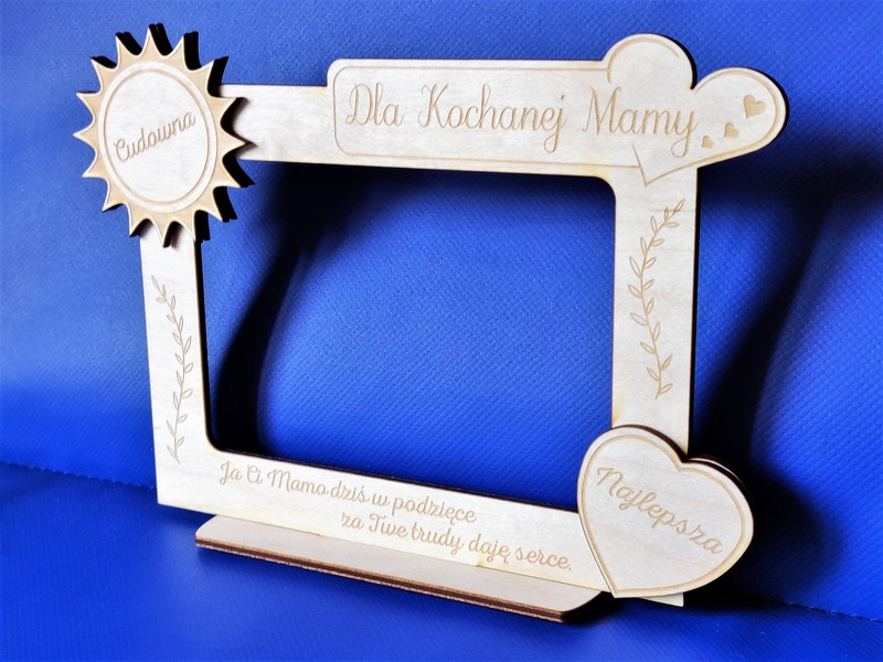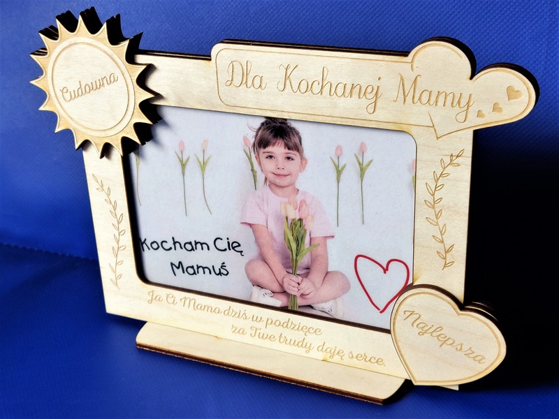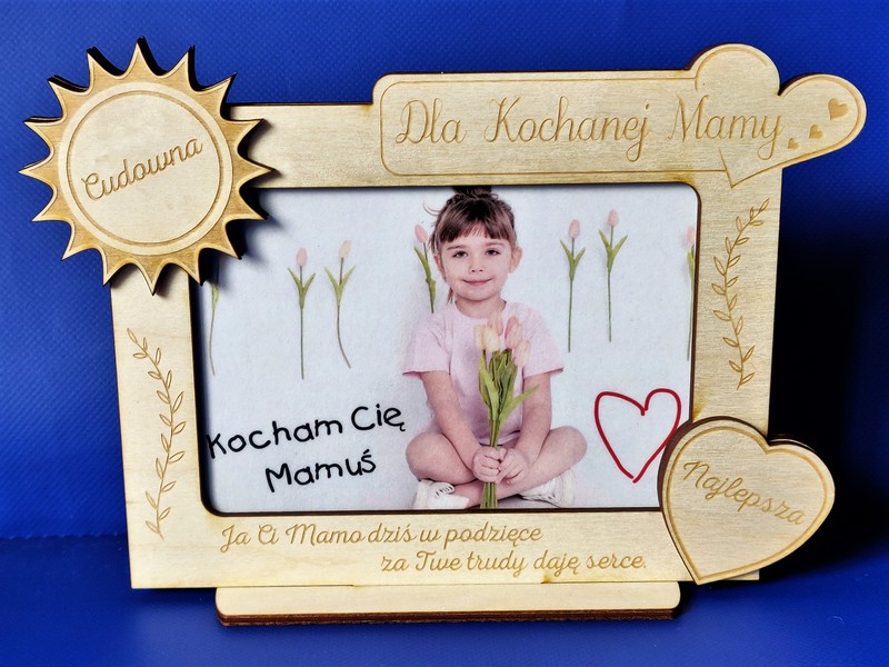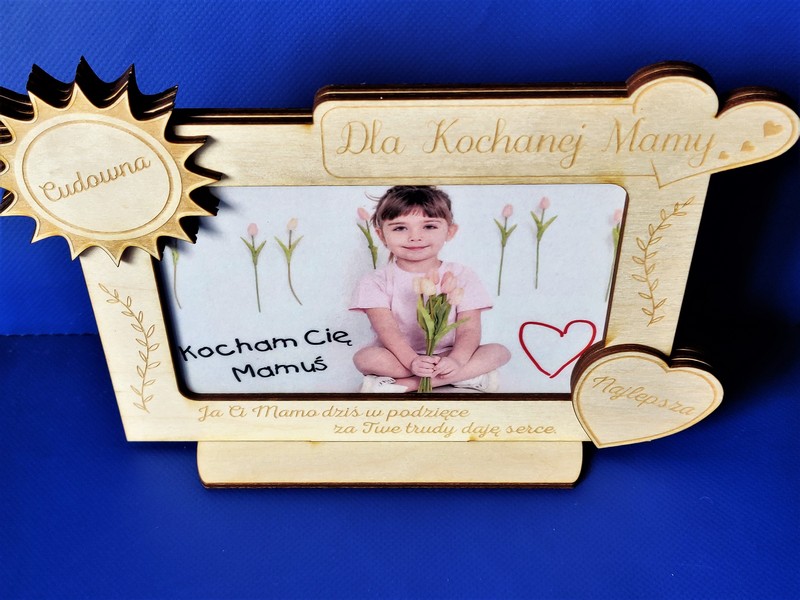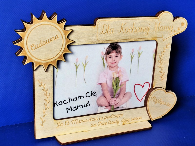 Wyjątkowy upominek dla Mamy w formie drewnianej stojącej ramki z grawerem dedykacji.