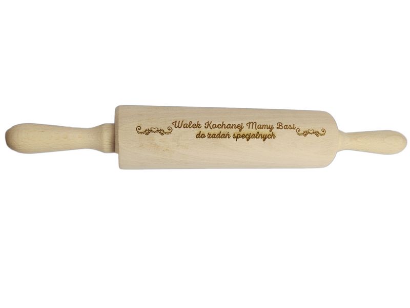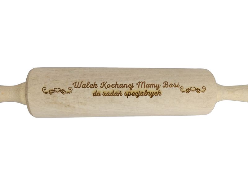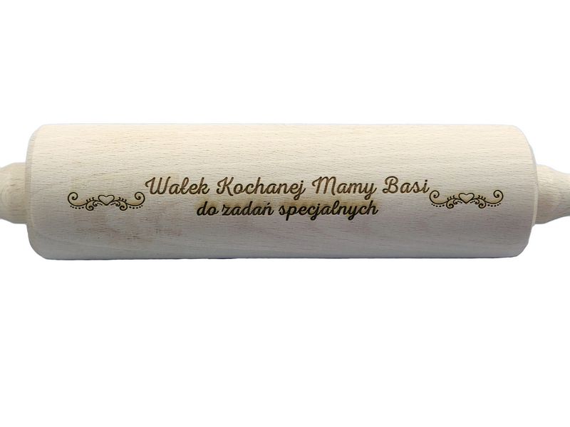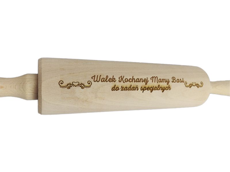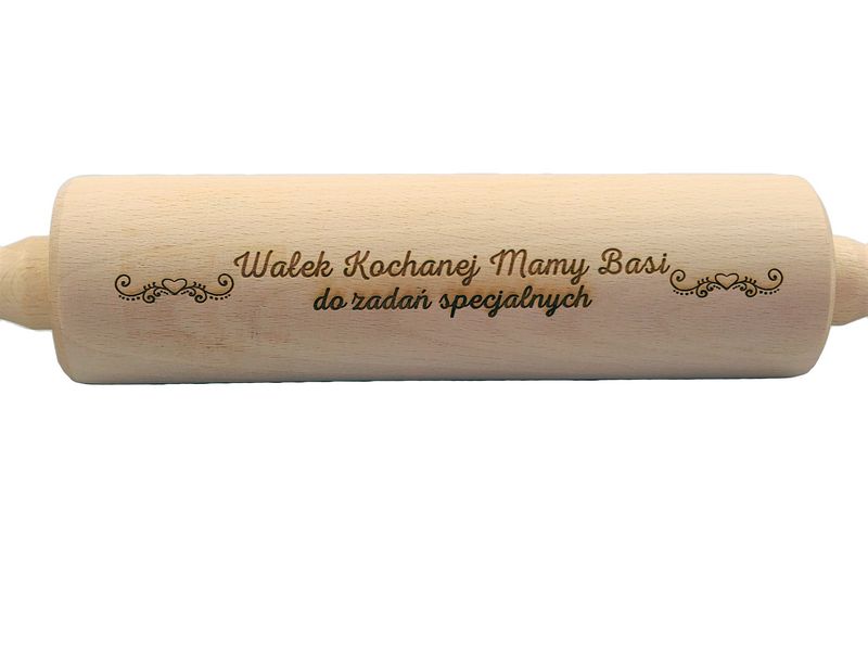 Na wałku wykonany jest grawer dedykacji "Wałek Kochanej Mamy do zadań specjalnych".