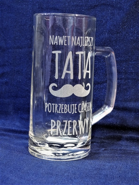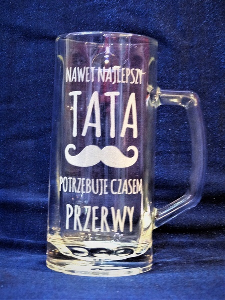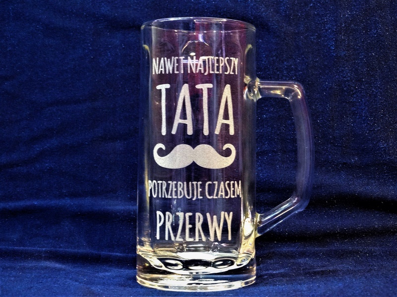 Wygrawerowany kufel może w szczególności sprawdzić się jako upominek z okazji Dnia Ojca.