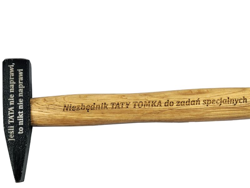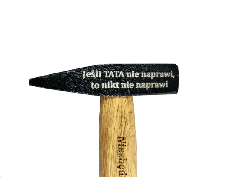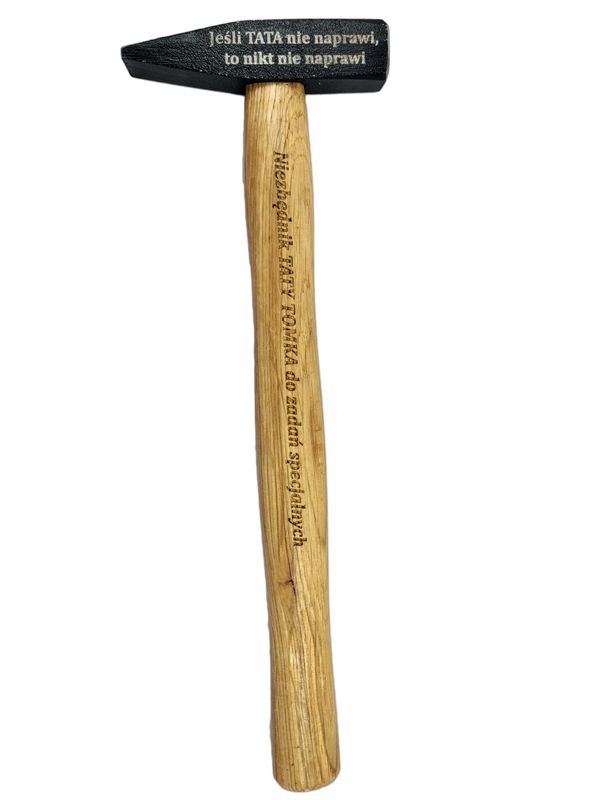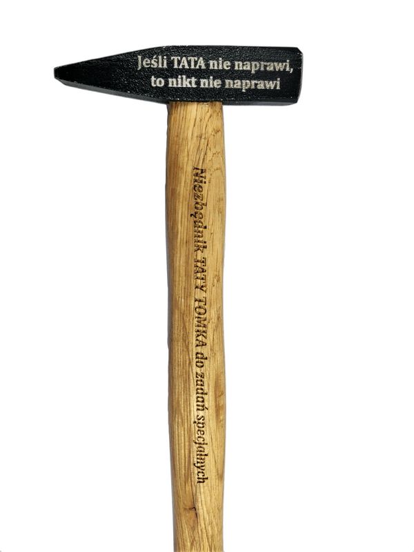 Upominek dla Taty w postaci standardowego młotka ślusarskiego z grawerem dedykacji.