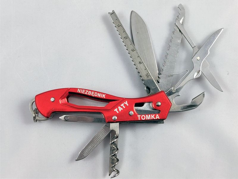 Upominek dla Taty w postaci praktycznego scyzoryka z grawerem dedykacji.
