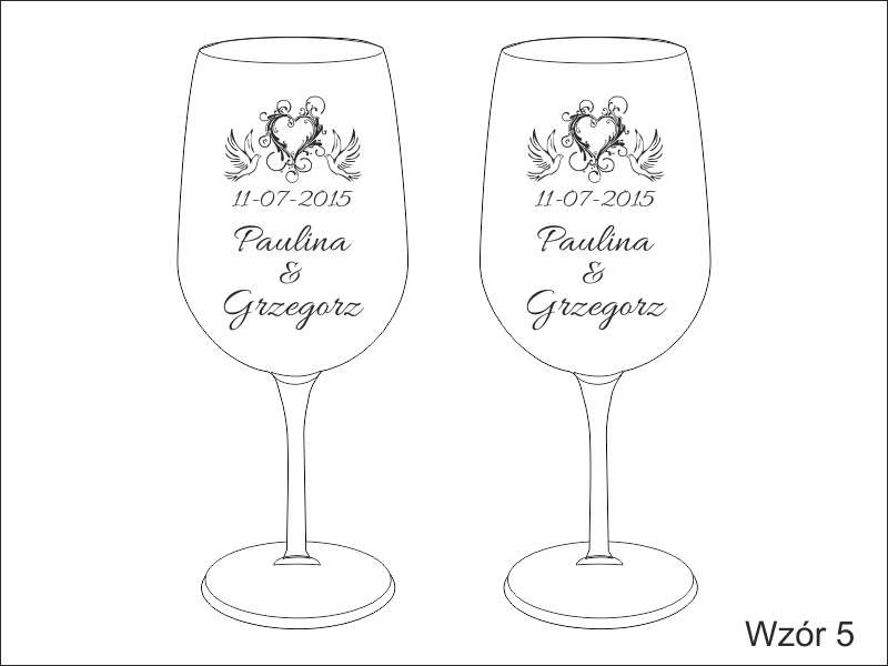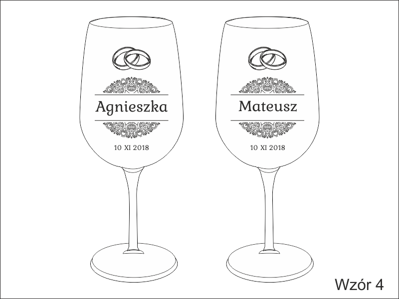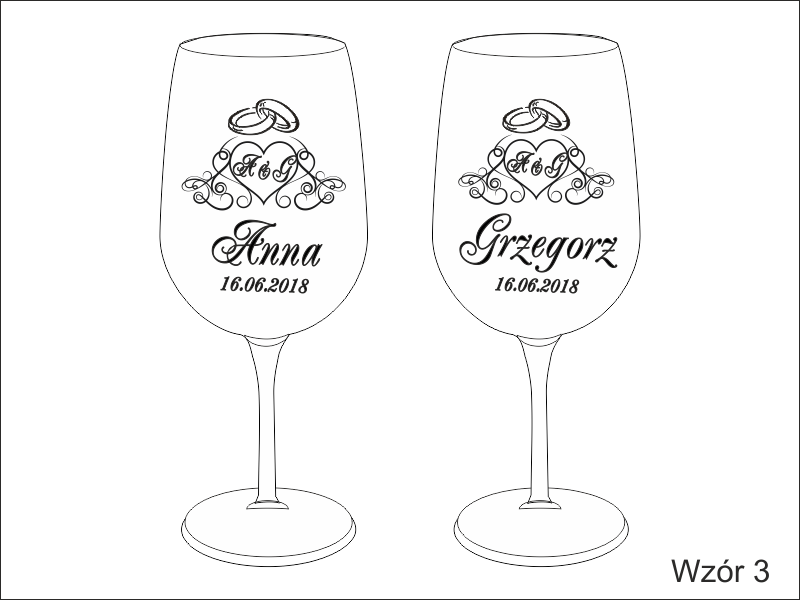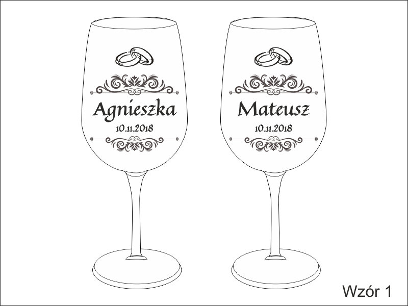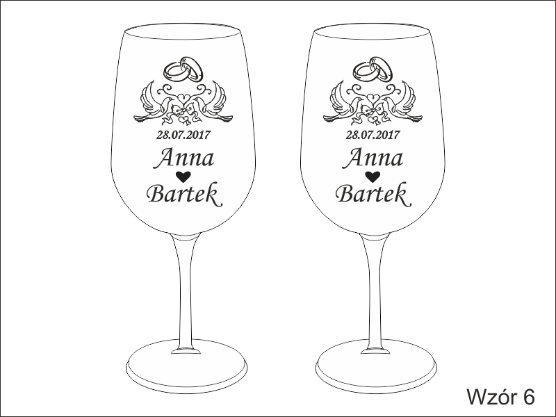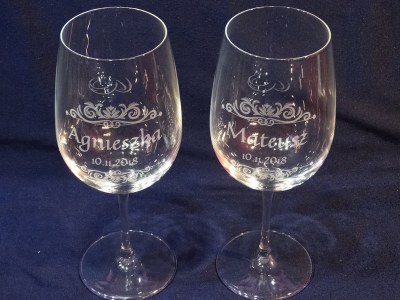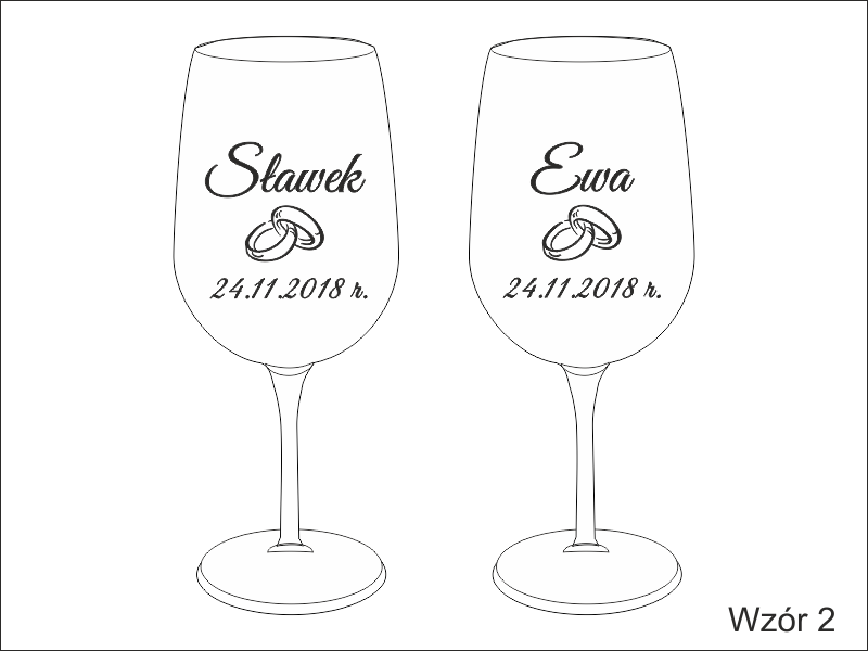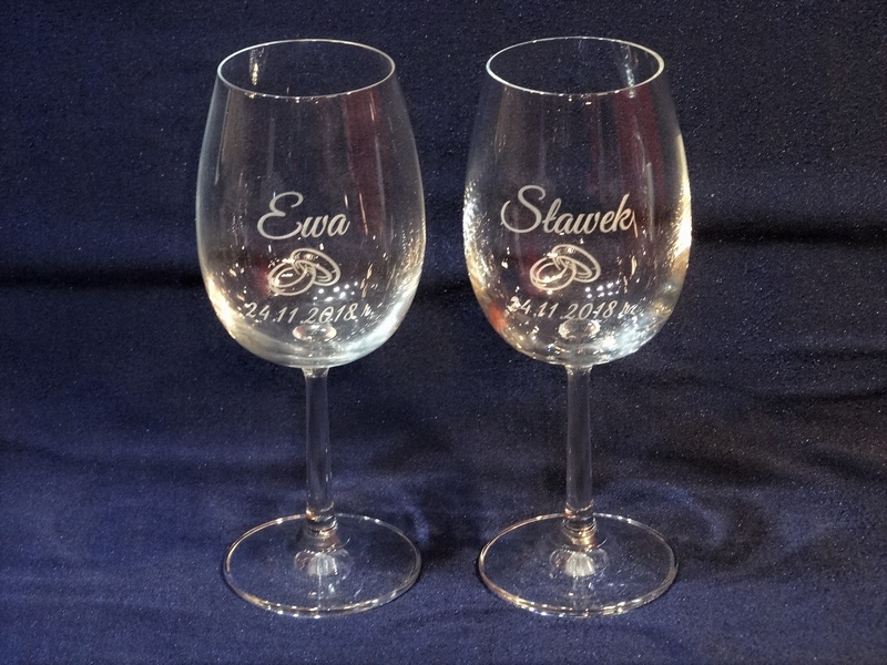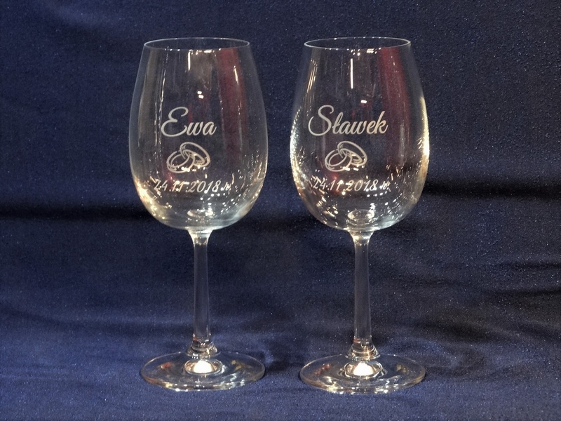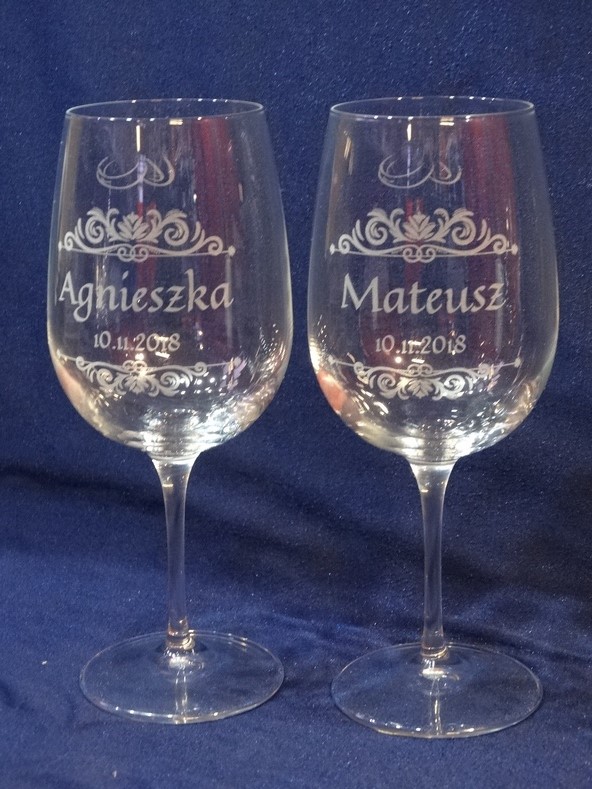 Komplet 2 kieliszków do wina z grawerem dedykacji i ozdobników z okazji Ślubu.
