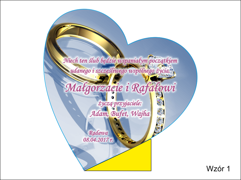 Istnieje możliwość nadruku dedykacji wg indywidualnych ustaleń i projektu lub wg jednego ze wzorów.