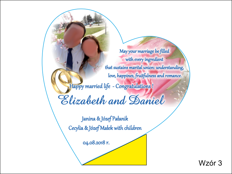 Oprócz dedykacji i ozdobnych elementów Istnieje także możliwość nadruku zdjęcia.