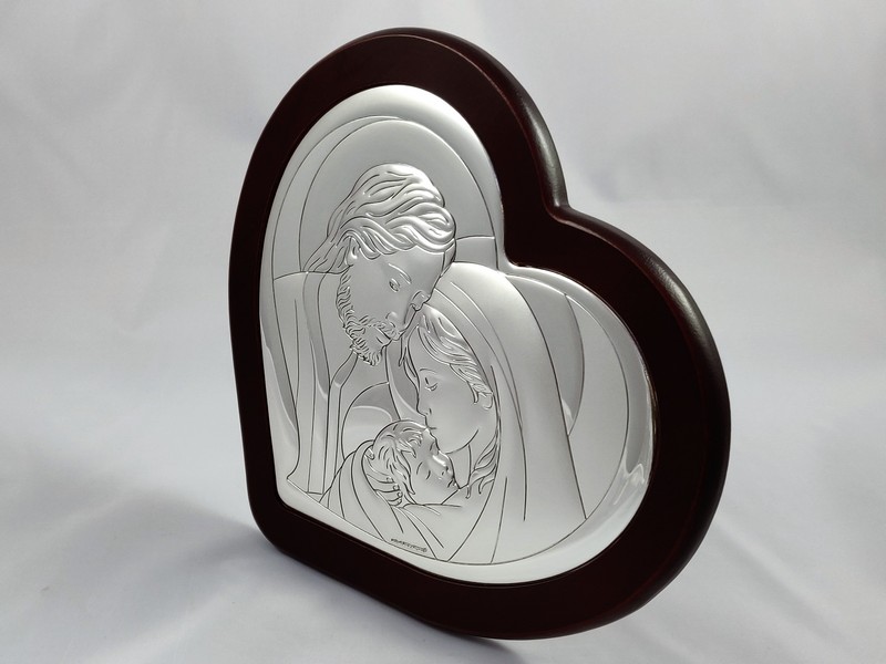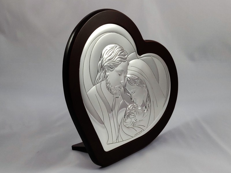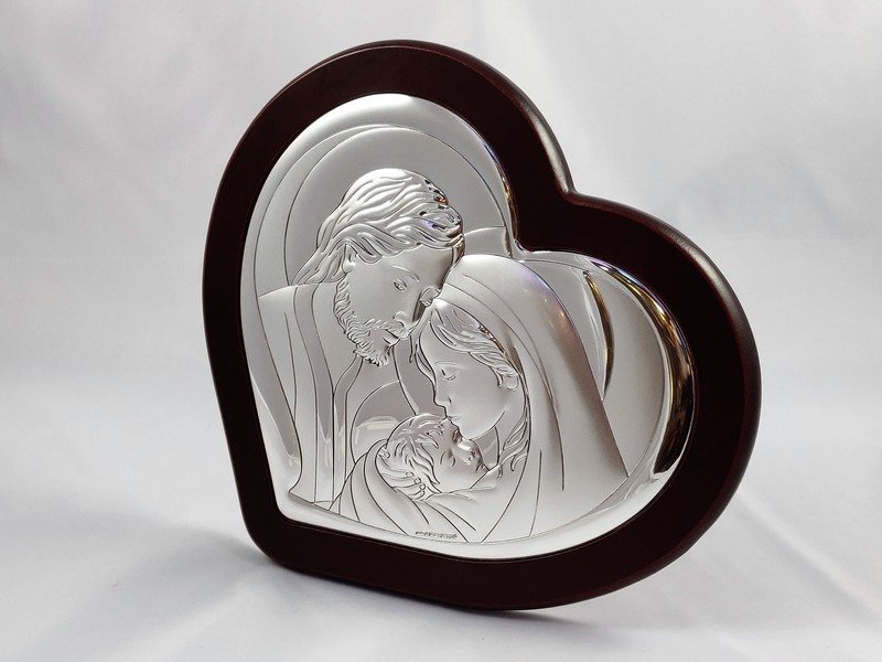 Srebrny Obrazek na drewnie to "Święta Rodzina 6432WM serce".